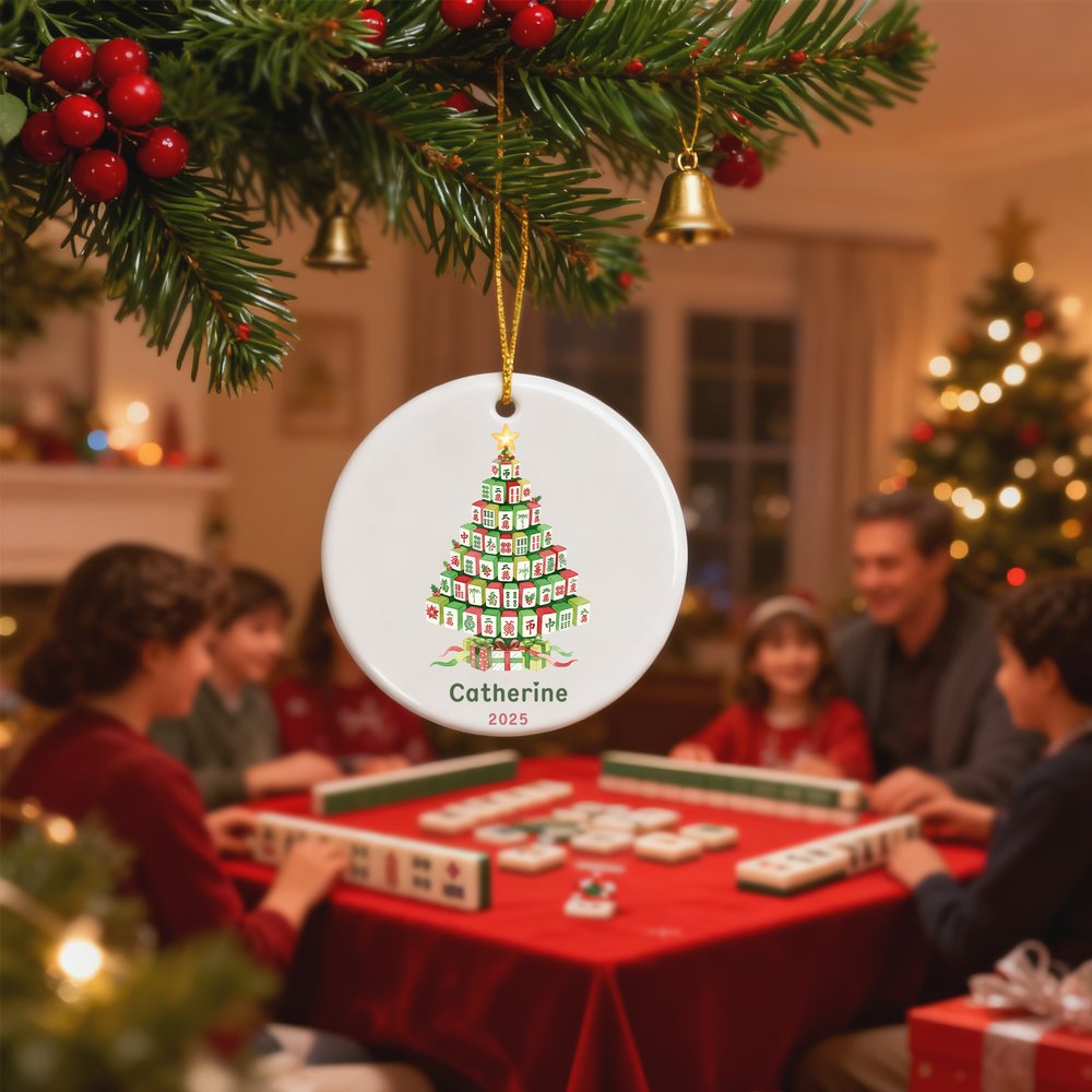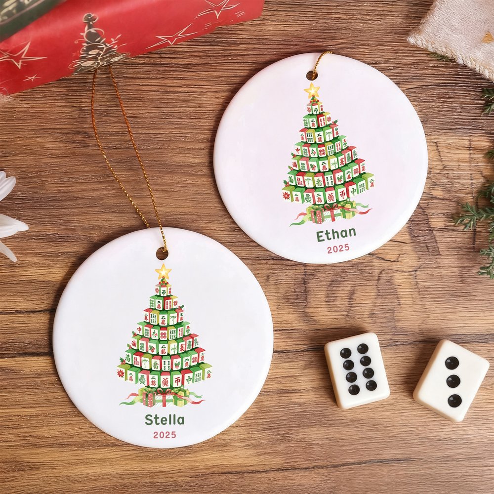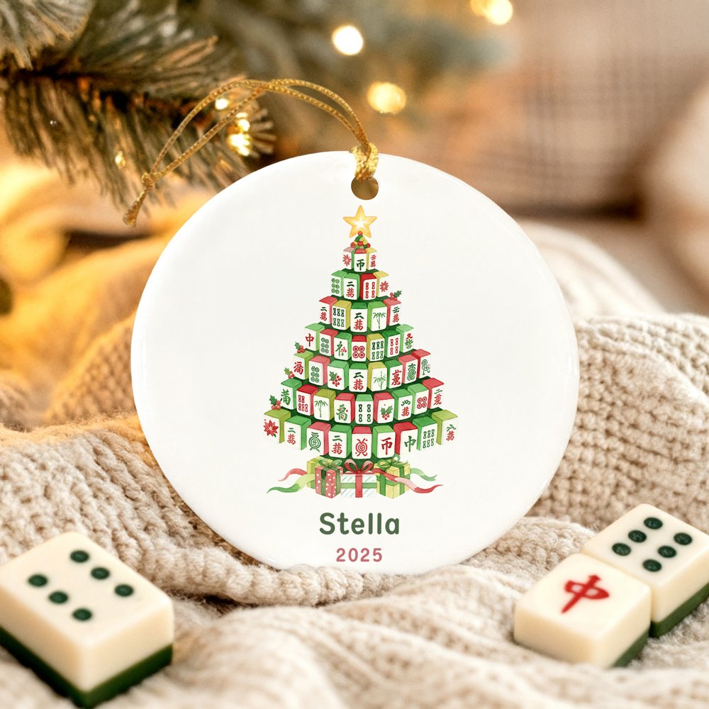 This ceramic ornament is inspired by classic Mahjong tiles, beautifully crafted into a festive Christmas tree design that seamlessly blends holiday tradition with Mahjong culture. The unique Mahjong patterns and cheerful aesthetics add a playful touch to your decorations, making your Christmas tree the center of attention. You can customize it with names and years, bringing endless laughter and joy to your celebrations.