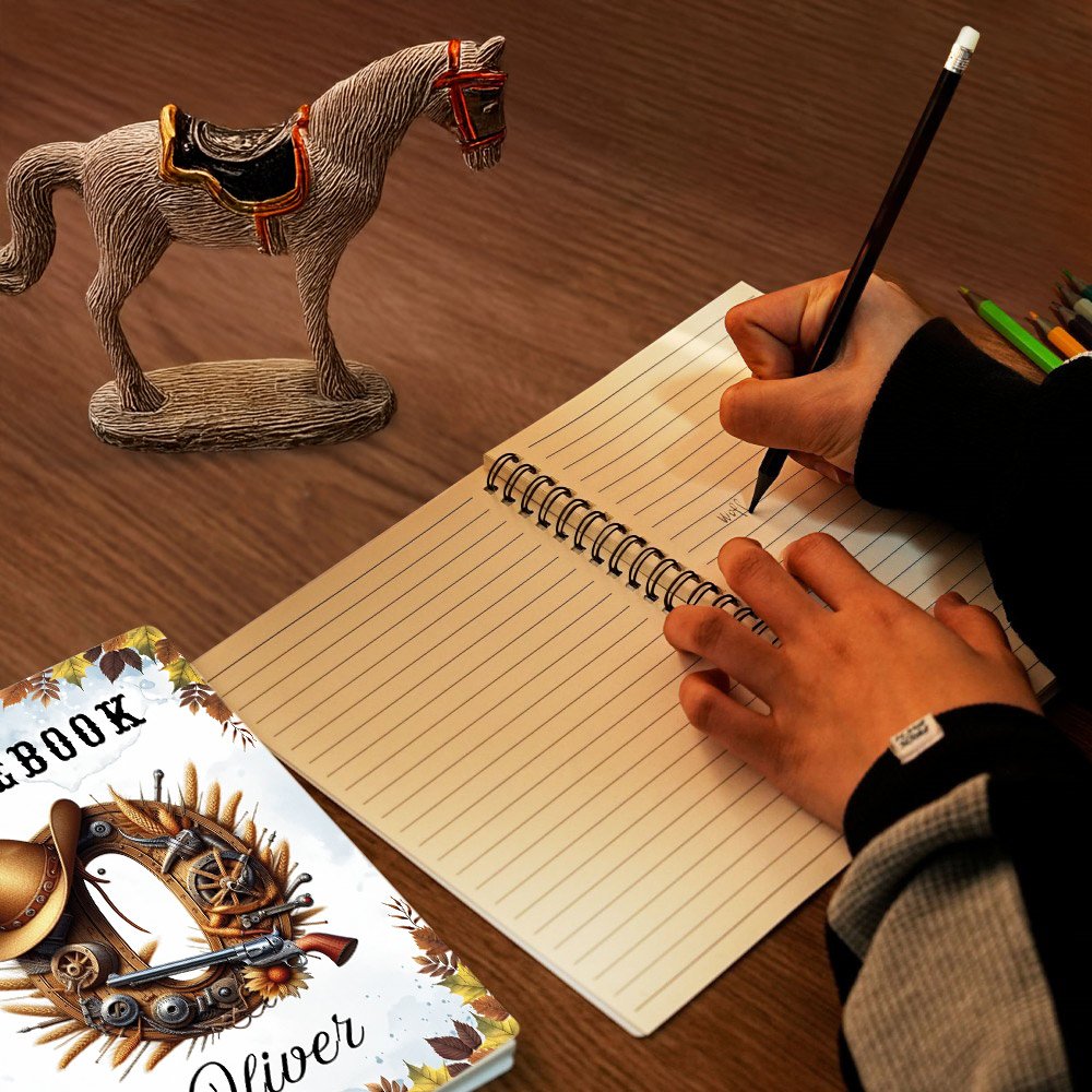 Radiating creativity and inspiration, this notebook features customizable horse-themed initials and can be customized with a name to express your love of equine elements, adding fun to everyday writing.