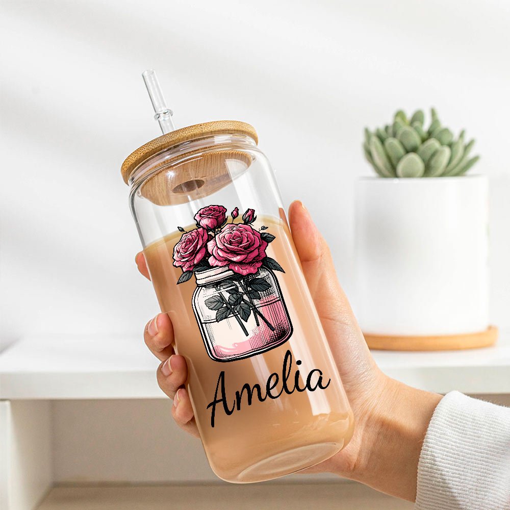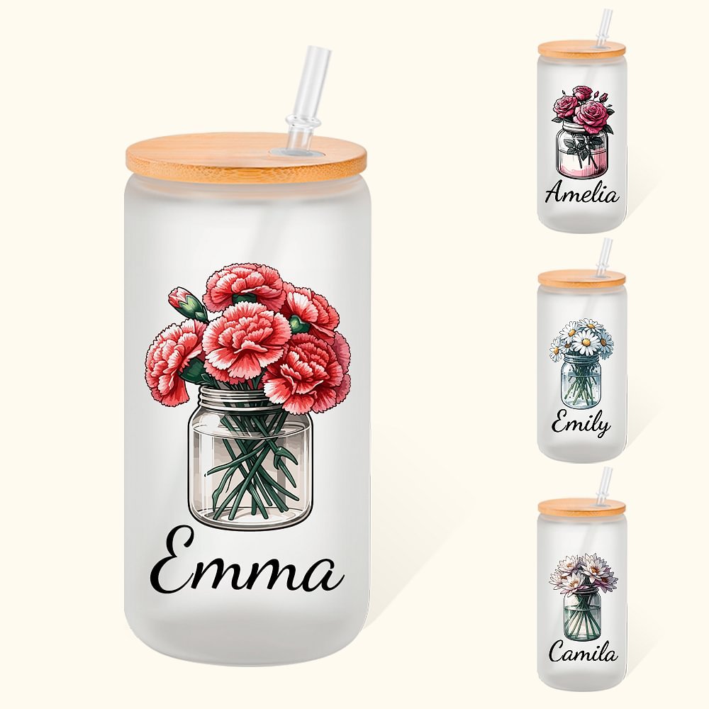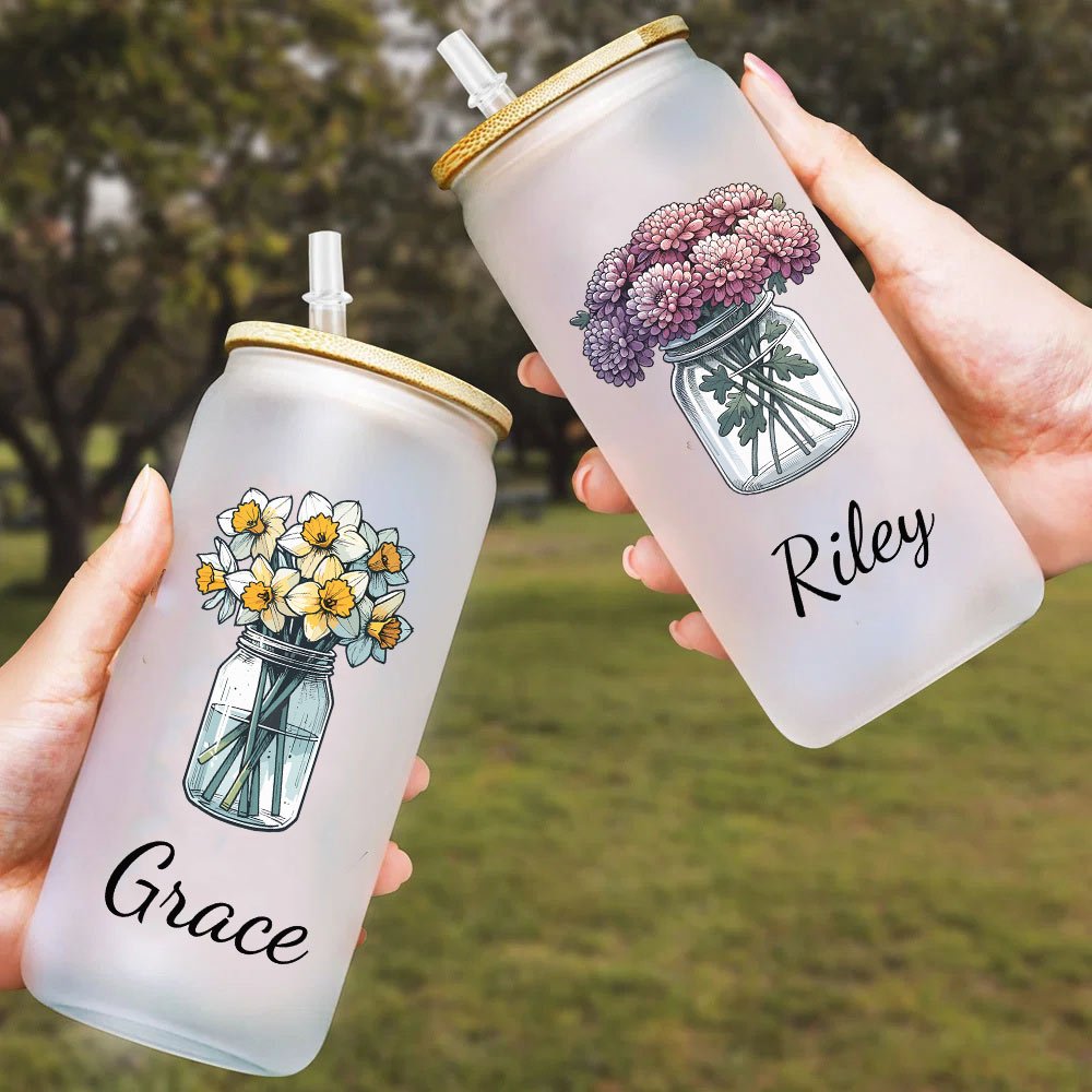 The classic Mason jar design embodies timeless charm and functionality. Paired with the exquisite patterns of birth flowers, this combination offers a Personalised touch that celebrates individuality. With options to customize the birth month flowers and names, it creates a meaningful and beautiful symbol of connection.