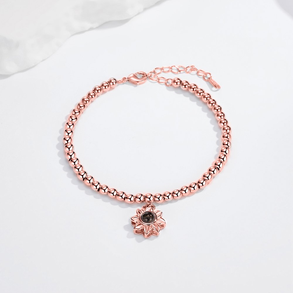 Are you looking for a unique and heartwarming gift to express your love and appreciation? Look no further than our Personalised micro-carved projection sunflower photo bracelet. The pendant of this bracelet is delicately crafted in the shape of a sunflower, symbolizing warmth, love, and happiness. Its vibrant color is sure to brighten up any outfit, making it a perfect accessory for everyday wear or special occasions.