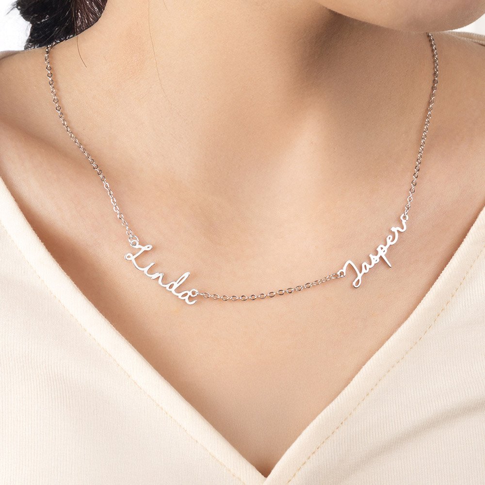 Crafted with premium material, this necklace ensures durability and longevity. The names are delicately cut, creating a polished and refined finish.