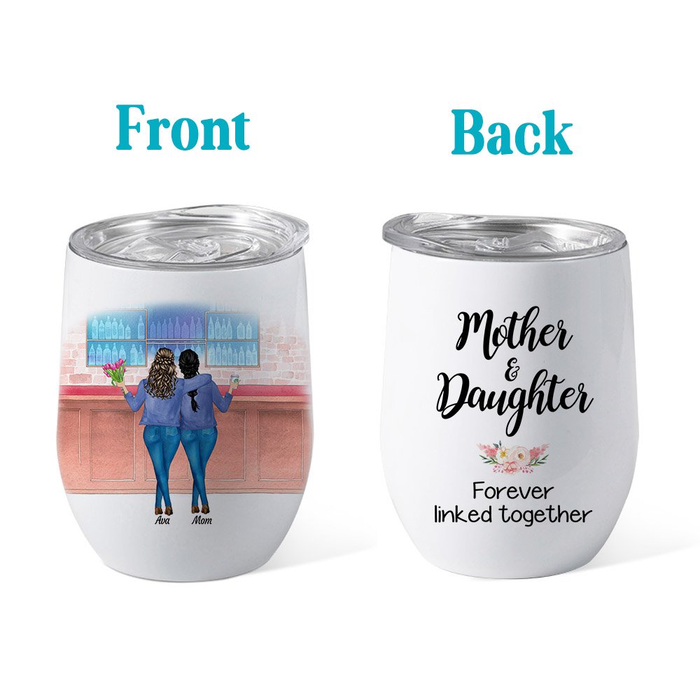 Personalised Mother And Daughter Forever Linked Together Wine Tumbler Suitable for Hot and Cold Liquids Mother's Day Gift