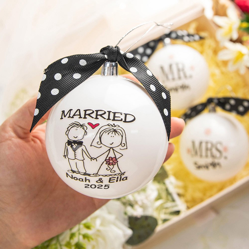 Hang these beautiful ornaments on your Christmas tree or use them as decorative accents during your holiday parties. They can be easily displayed anywhere in your home, adding a touch of magic to every room. Whether you're celebrating your first Christmas as a married couple or commemorating a milestone anniversary, these ornaments are the perfect way to honor your love and create lasting memories.