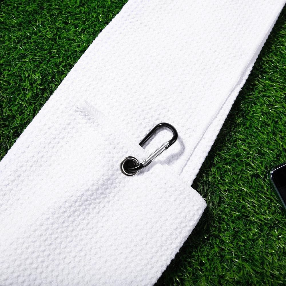 The towel easily folds into three compact sections to fit neatly in your golf bag. A detachable clip allows you to attach it to your bag, belt, backpack, or handbag for convenient access on the course.