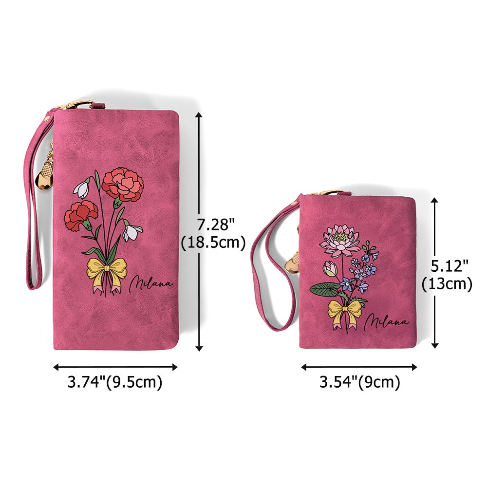 This wallet stands out with a unique and vibrant multi-colored leather design. Each wallet is like a piece of art, printed with a beautiful birthday flower pattern, showing the tenderness and delicacy of women. The name can also be customized on the wallet, adding an exclusive personal style to each owner.