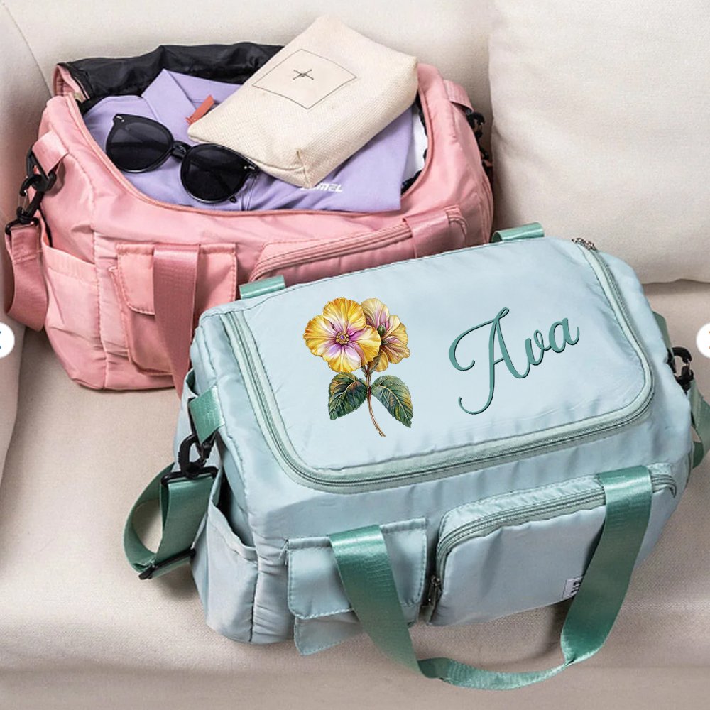 This travel bag features a vivid birth flower, adding a sweet and exquisite beauty. We provide 7 different font colors and 4 bag colors, you can choose based on your preference. It can also be customized with your name, helping you easily identify the bag and stand out from the crowd.
