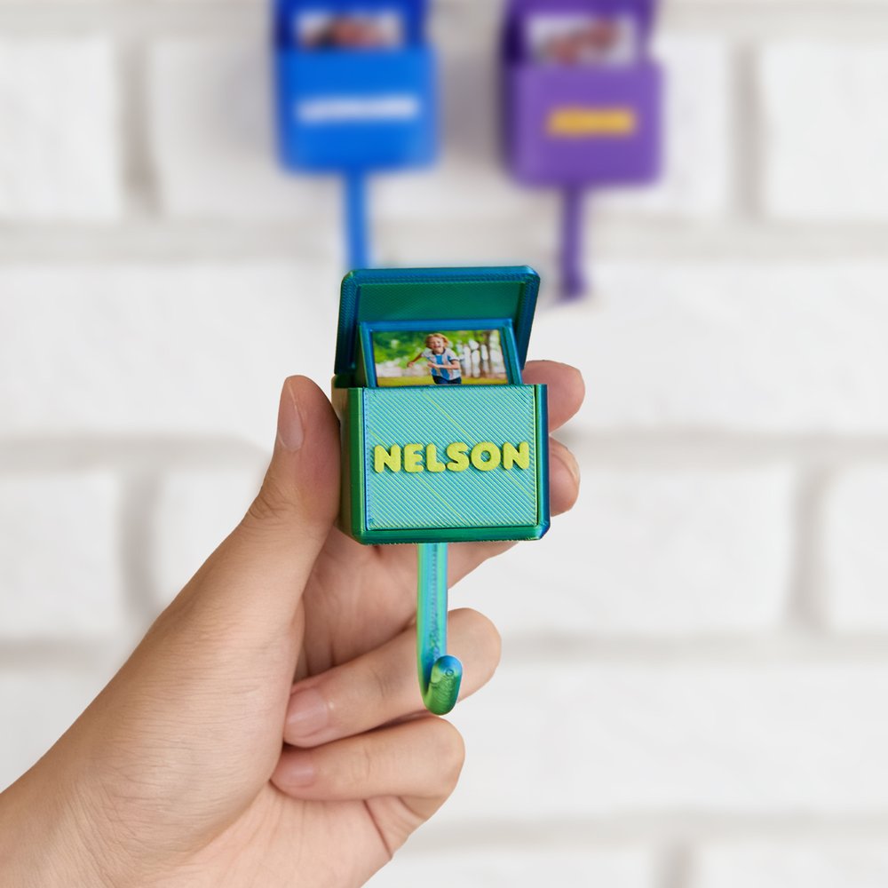 Brighten your entryway with our vibrant multicolor key holder, featuring a Personalised 3D-printed name and a customizable photo panel. This innovative design allows you to display your favorite memory while keeping your keys organized, creating a truly unique and heartwarming addition to your home that combines practical function with personal style.