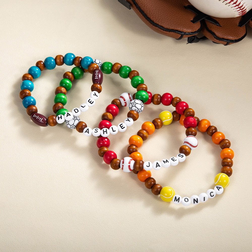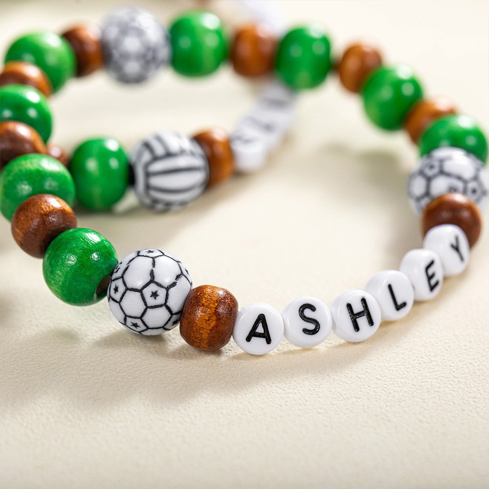 This bracelet combines sporty elements with stylish beading. Each bead has been carefully selected and matched, not only in bright colors but also in rich sportsmanship. The bracelet design incorporates a variety of ball patterns, such as basketball, soccer, baseball, rugby, softball, tennis, and volleyball patterns, you can choose according to your preferences. The bracelet also supports custom names to make it even more distinctive.