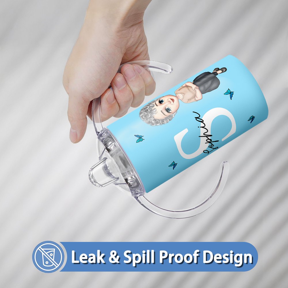 This sippy cup is designed for the elderly. The cup body is printed with beautiful butterfly illustrations, colourful, and available in 9 colours, full of vitality. In addition, you can choose the appropriate cartoon image and add your name and initials, which not only enhances the sense of exclusivity but also effectively prevents confusion. It is especially suitable for homes, nursing homes, and other places.