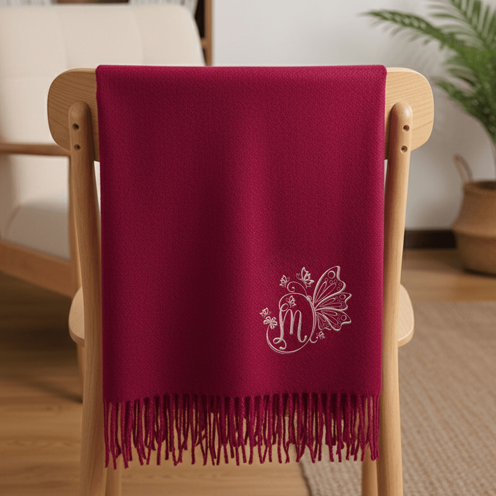 This scarf elegantly combines a butterfly motif with an initial, delicately accented with refined tassels, creating a sophisticated and graceful style. It supports Personalised initial customization and is available in multiple colours and two sizes, effortlessly adapting to various outfit preferences and showcasing unique taste.