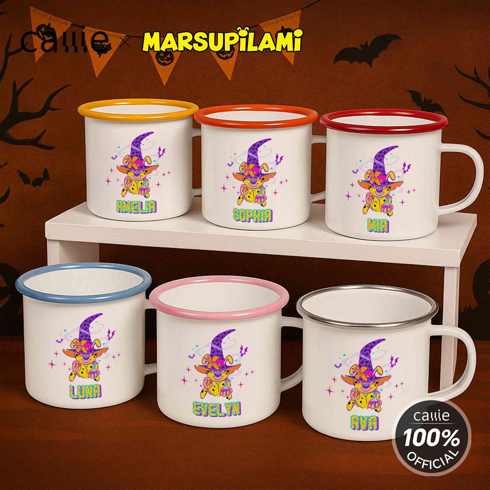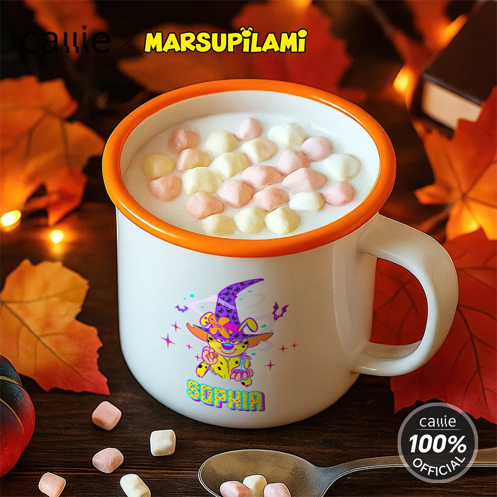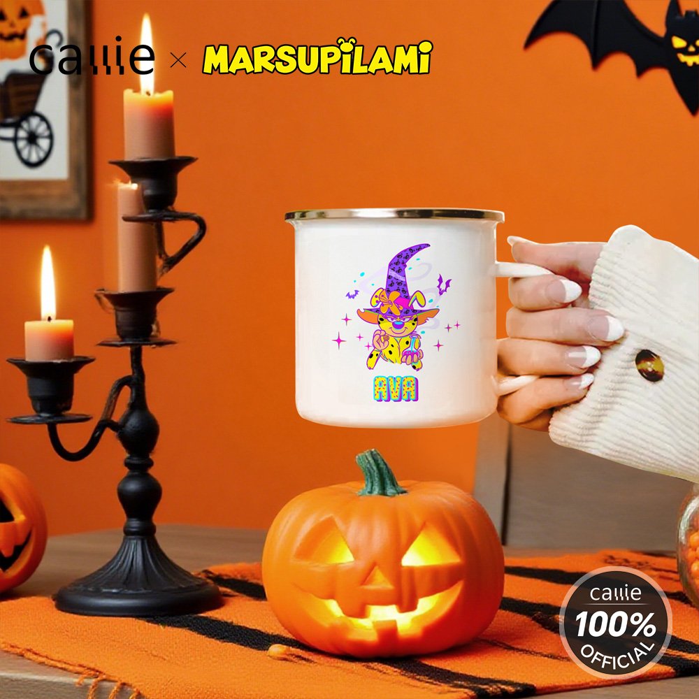 Personalised Multicolor Classic Cartoon Bats Halloween Witch Marsupilami 12 oz Enamel Mug with Name Halloween Gift for Kids | Callie × Marsupilami®