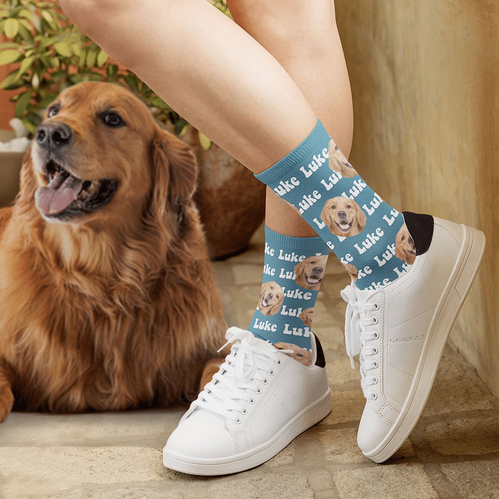 Featuring vibrant, colorful designs that can be customized with your pet's likeness and name, these mid-calf socks offer a fun and Personalised way to celebrate your furry companion.