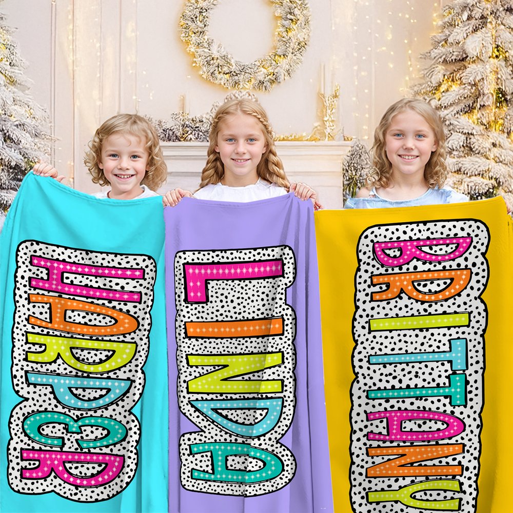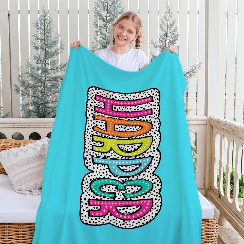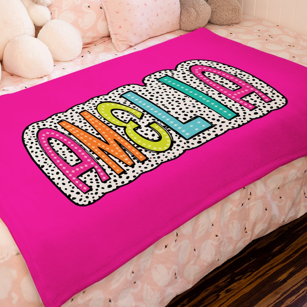 Inspired by classic Dalmatian dots, this blanket incorporates the recipient's name into a dotted letter design, creating a unique visual focal point. Each letter is filled with a lively dot pattern, paired with highly saturated, vibrant colors, retaining a childlike charm while incorporating modern, minimalist aesthetics. Available in multiple colors to easily match different home décor styles, it's not only a practical and warm item but also a finishing touch to express individuality in your soft furnishings.
