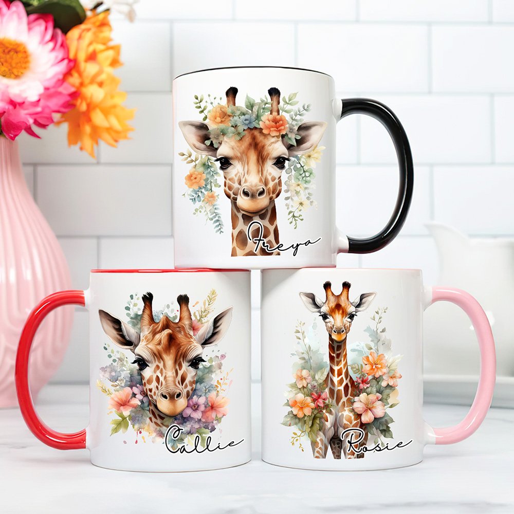 This mug is inspired by the giraffe, a gentle and spiritual animal surrounded by a variety of flowers and green leaves, giving people a feeling of natural harmony. 20 different giraffe forms make your choice even richer. The mug can also be customized with a name to create a one-of-a-kind souvenir.