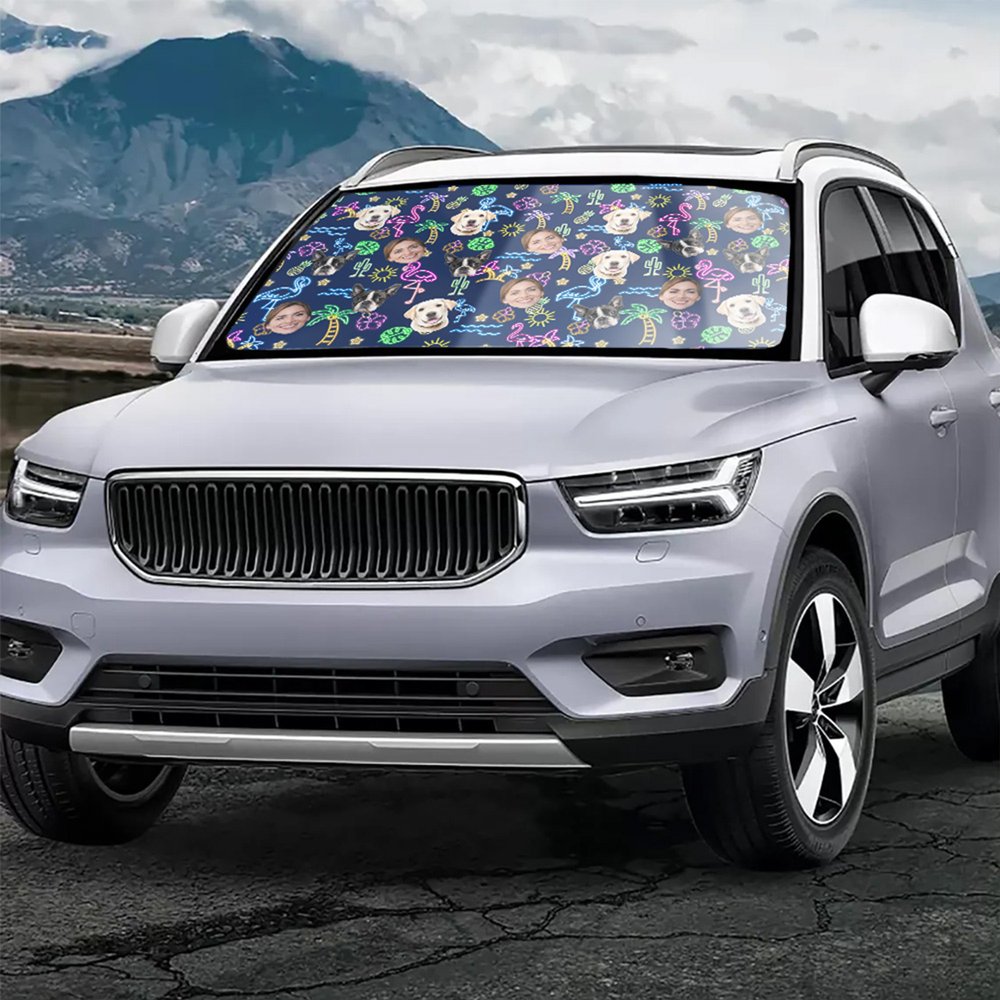 Our car sunshade umbrella stands out with its playful custom portrait designs. Upload up to three photos of friends, family, or beloved pets, and we'll transform them into charming face photos that give your sunshade a distinctive personality. Vibrant patterns like fireworks, cakes, and flower bouquets adorn each piece, instantly elevating your vehicle's style with one-of-a-kind flair.