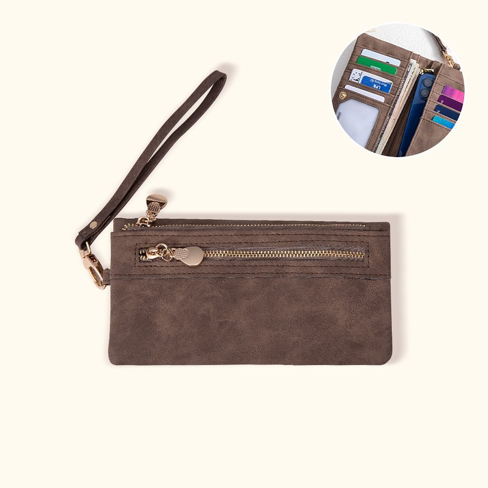 These wallets are not only stylish but also highly functional. With 1 ID Windows, 11 Card Slots, 4 Cash Compartments, 1 Phone Pockets, and 2 Zipper Pockets, it can carry your phone, cash, cards and receipts, ID cards, etc. The attached wristband adds a practical element, allowing for easy carrying and providing an extra layer of security.