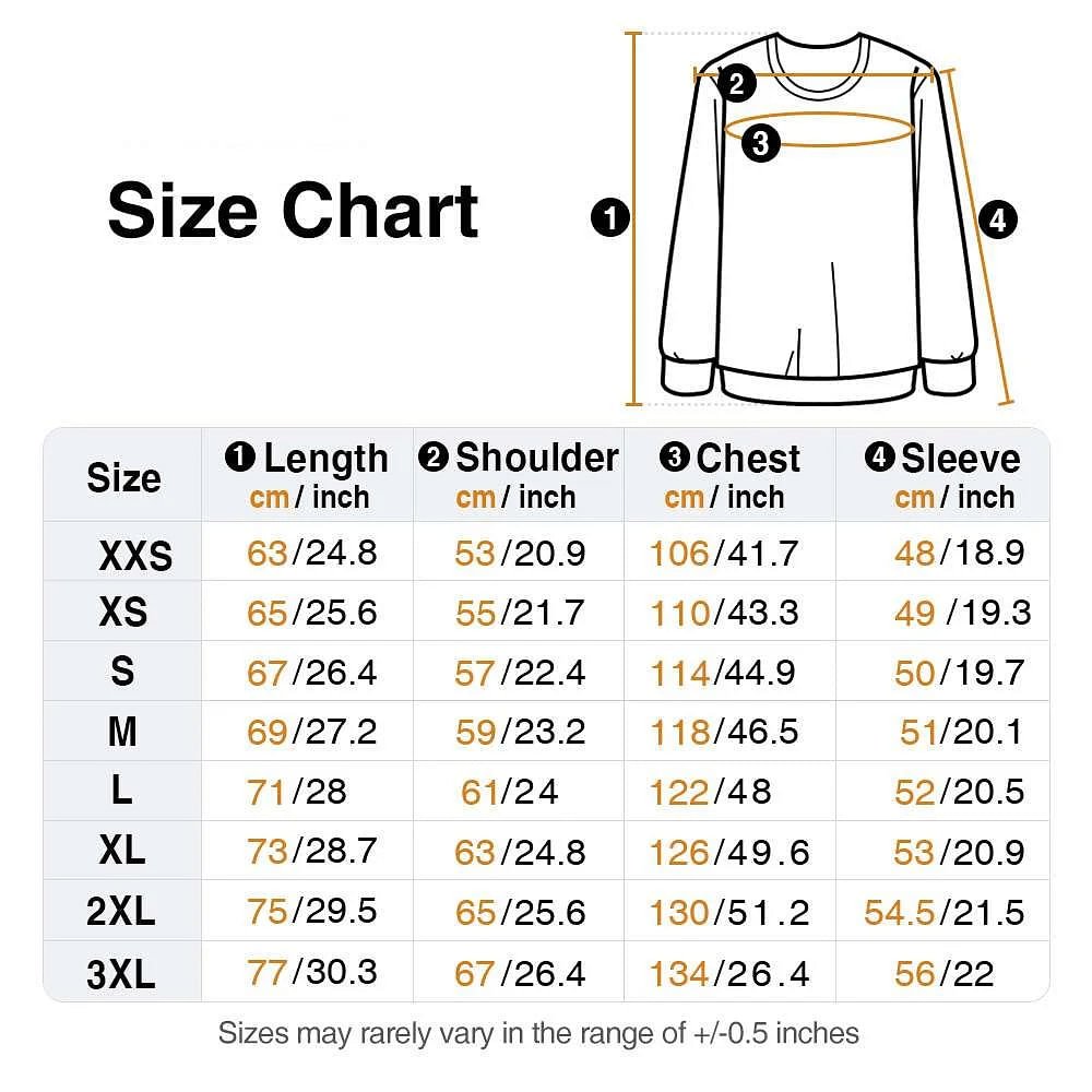 | Measurement: | T-shirt: XXS, XS, S, M, L, XL, 2XL, 3XL, 4XL, 5XL Sweatshirt : XXS, XS, S, M, L, XL, 2XL, 3XL |