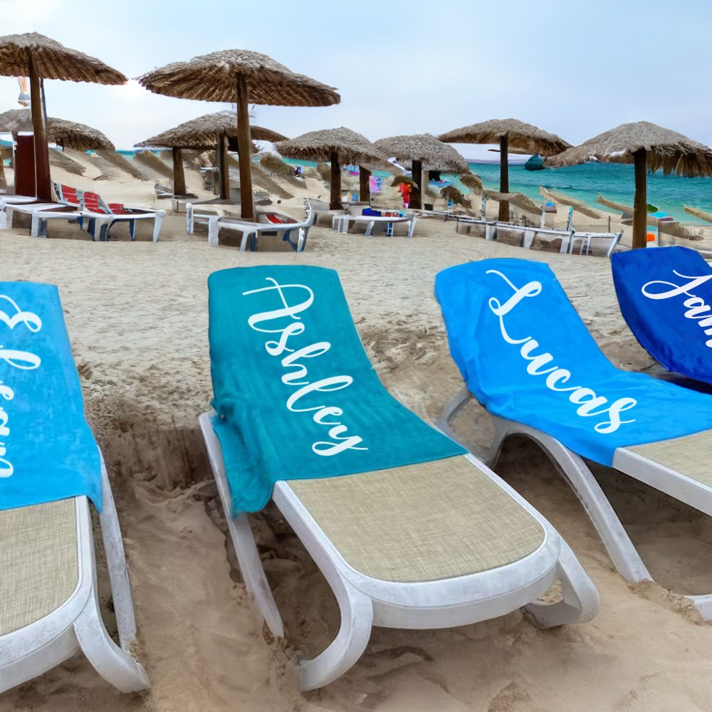 Personalise this towel with your name or a special message to create a one-of-a-kind beach accessory. Carefully selected color options instantly catch the eye and radiate energy and excitement. Imagine lounging on the sand with a vibrant towel proudly displaying your name, adding a touch of individuality and making it easy to spot on the beach.