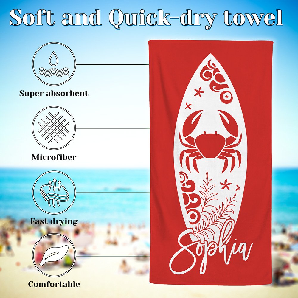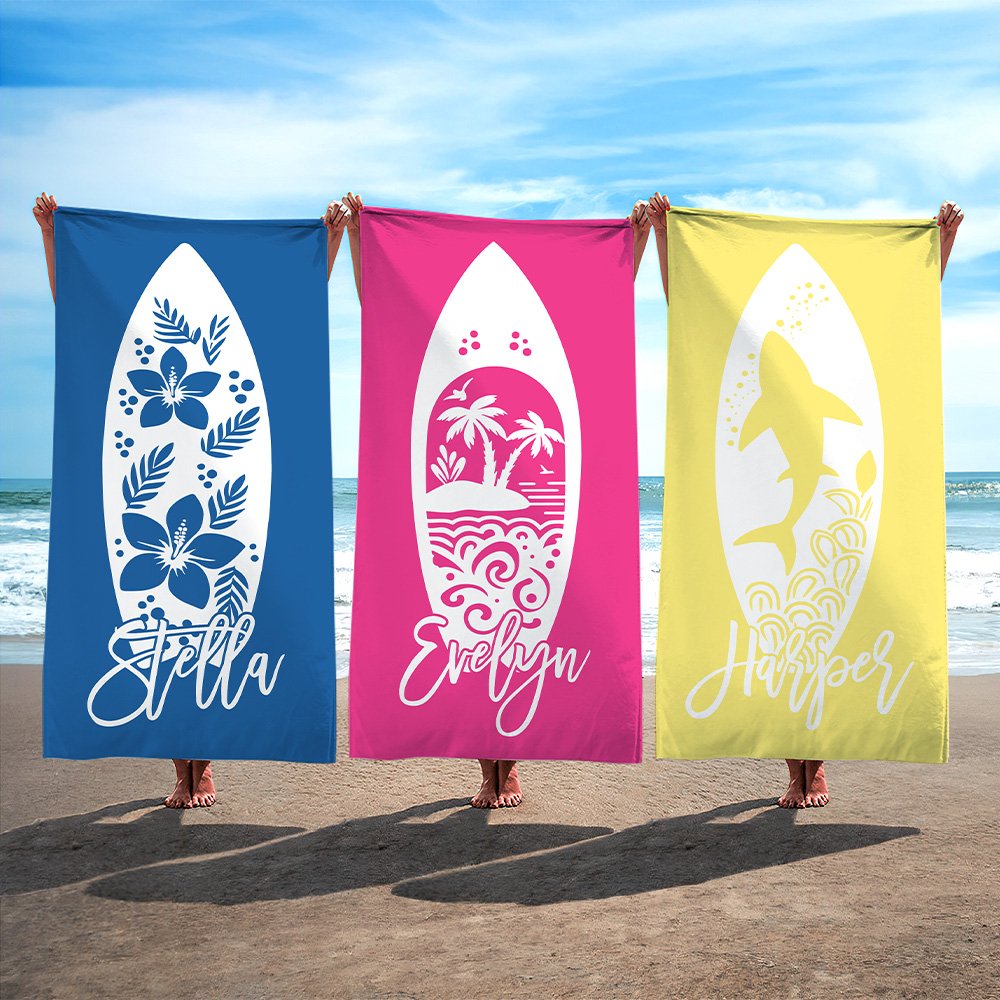 This beach towel is inspired by the vibrant summer elements, combined with cute marine life patterns such as surfboards, turtles, jellyfish, whales, etc., presenting a visual feast full of fun and childlike fun. Up to 22 background colors, and support for custom names, not only show personality but also add a sense of exclusivity so that you can easily stand out on the beach.