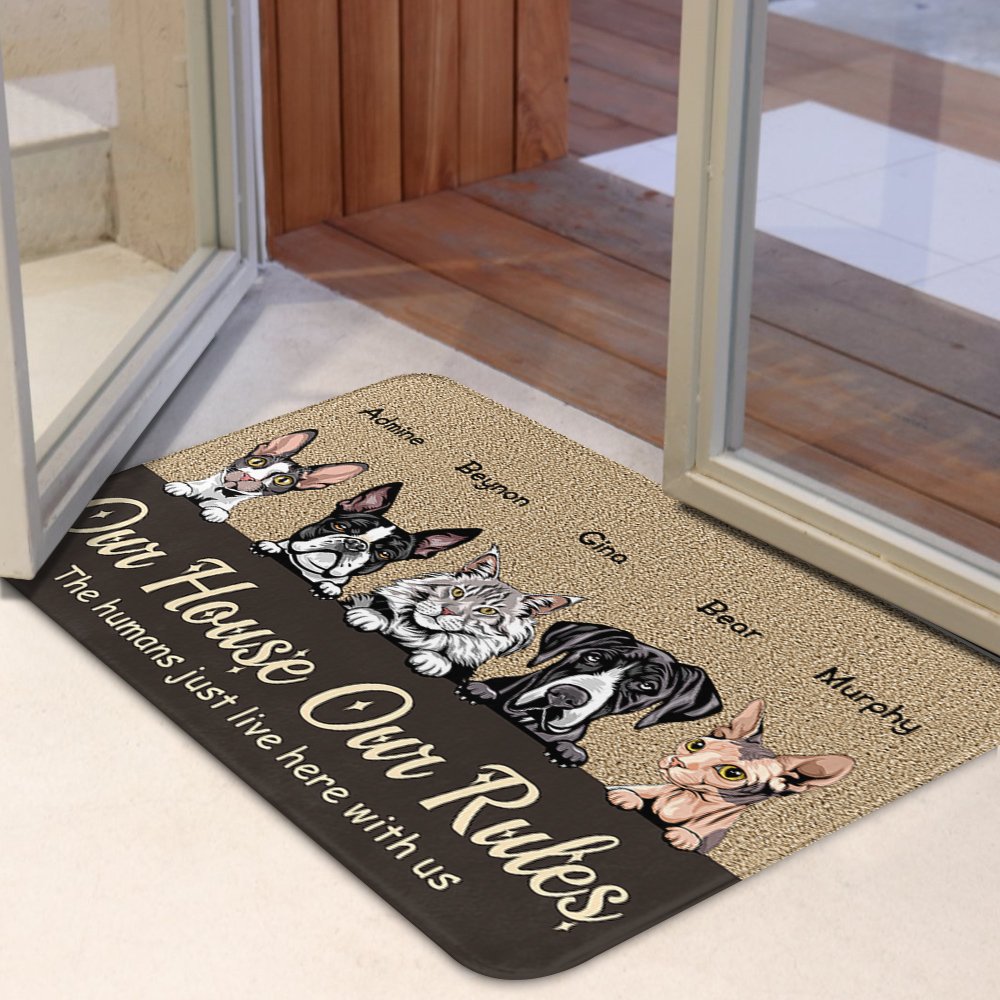 What makes this doormat extra special is the personalization option it offers. We provide a funny quote "My House My Rules" and the pet's custom name to this mat. Imagine the look of surprise and delight on the recipient's face when they see their beloved pet's name printed on this thoughtful gift!