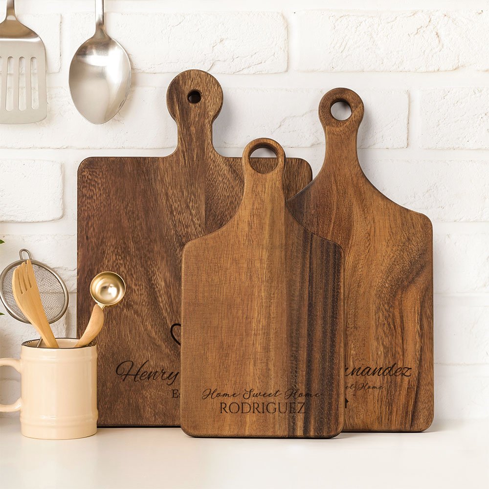 This chopping board is second to none as a housewarming or wedding gift. It conveys a sense of thoughtfulness and personalization. The engraved names and dates make it a keepsake that the couple or family will cherish for years. Every time they use it, they'll be reminded of the special occasion and the person who gave them such a meaningful gift.
