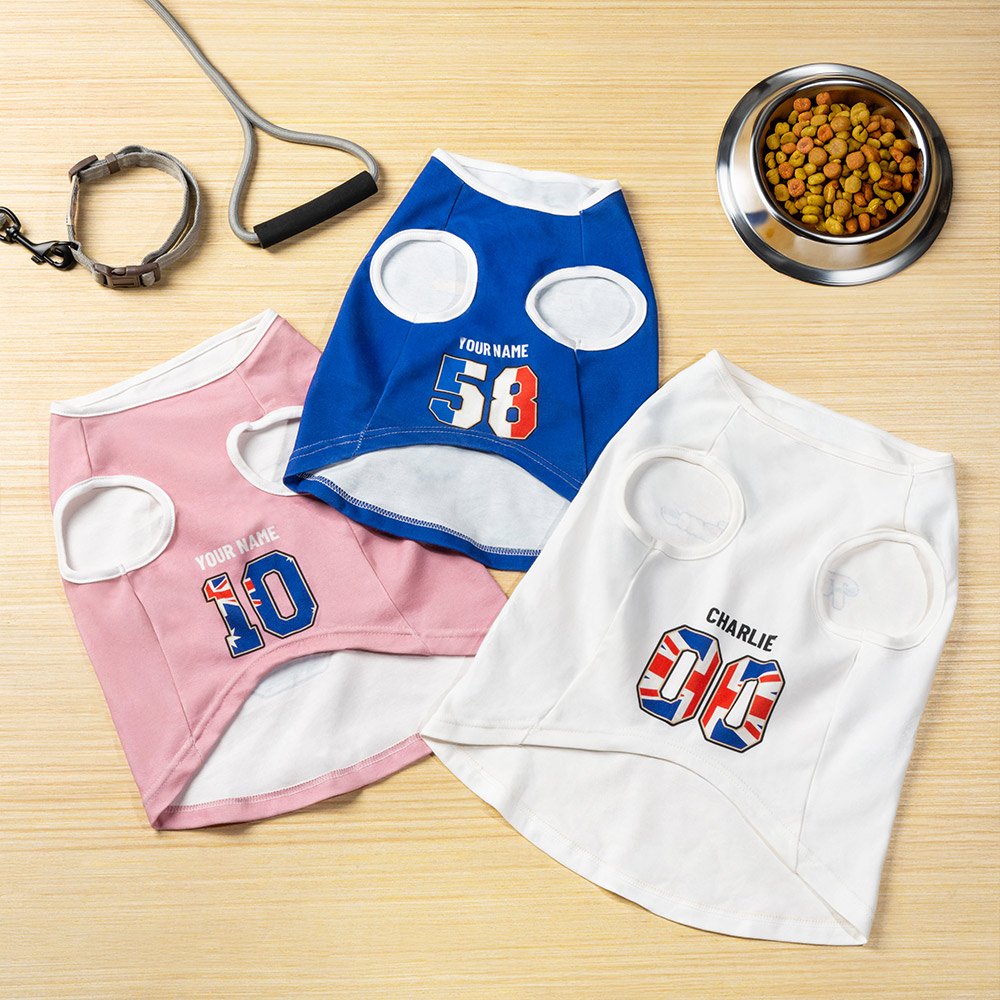You can choose the country of the team you support and customize the front and back with different names and numbers to create exclusive clothing for your pet.