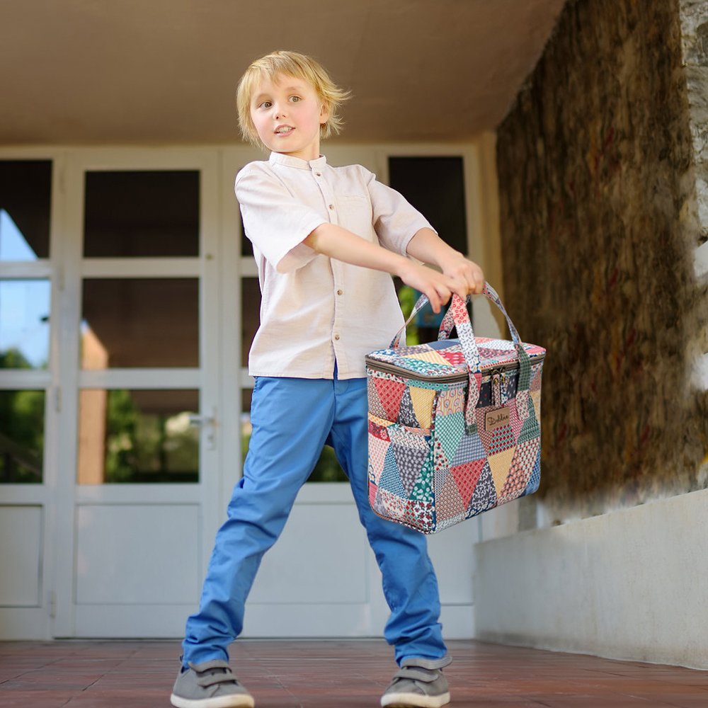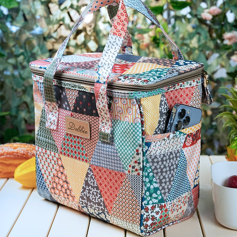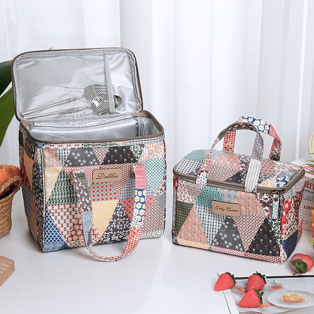 This lunch bag features a charming old-school patchwork design, which not only combines vintage style with modern functionality but also adds a touch of fashion and nostalgia. You can customize the center of this lunch bag with an engraved name, making it more unique and personal.