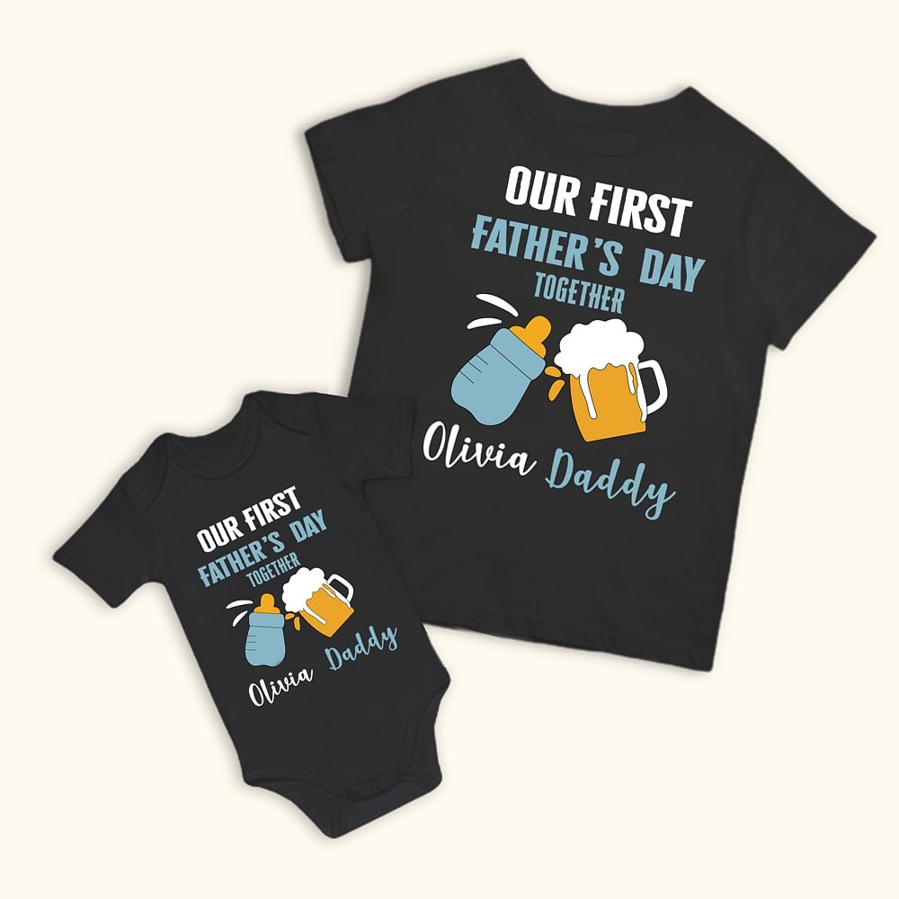 Personalised Our First Father's Day Together Father and Baby Matching Set 100% Cotton Shirt with Names Father's Day Gift for Baby New Dad