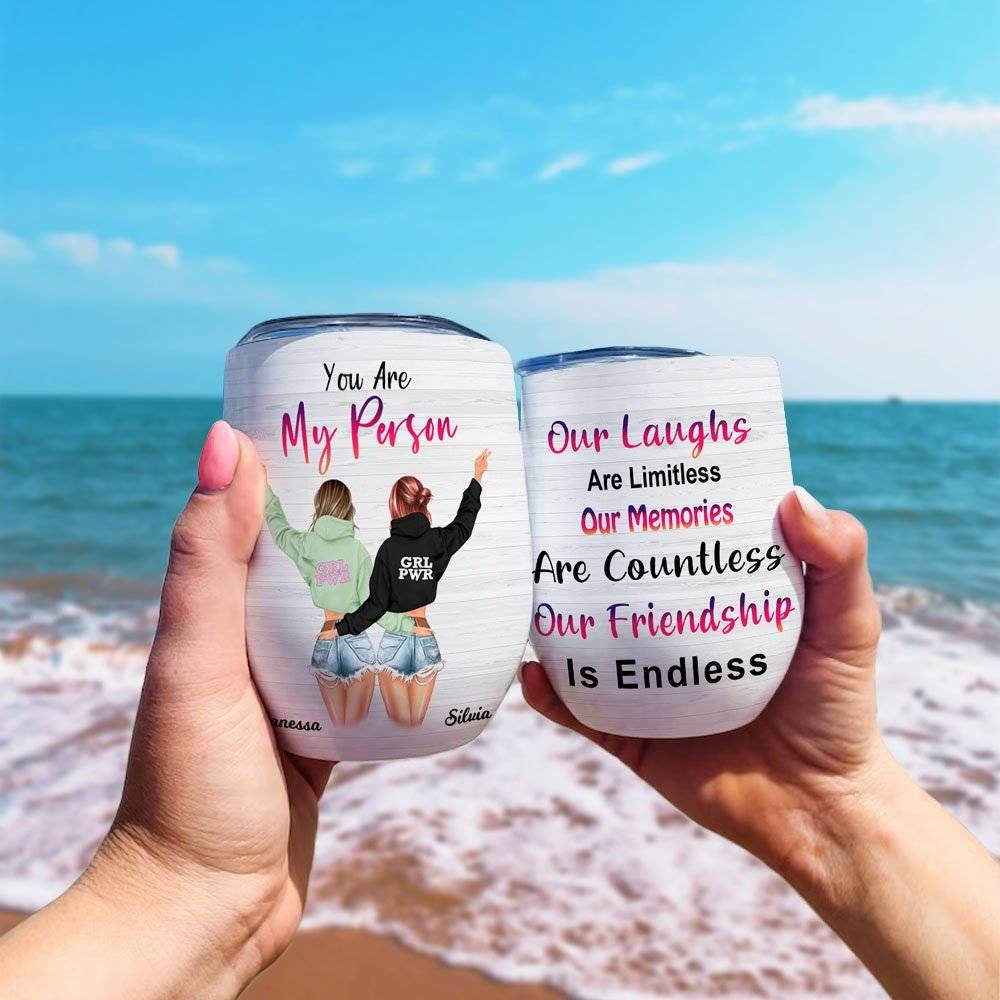 Personalised Our Laughs Are Limitless Our Memories Are Countless Our Friendship Is Endless Wine Tumbler Bestie Birthday Gift 12oz