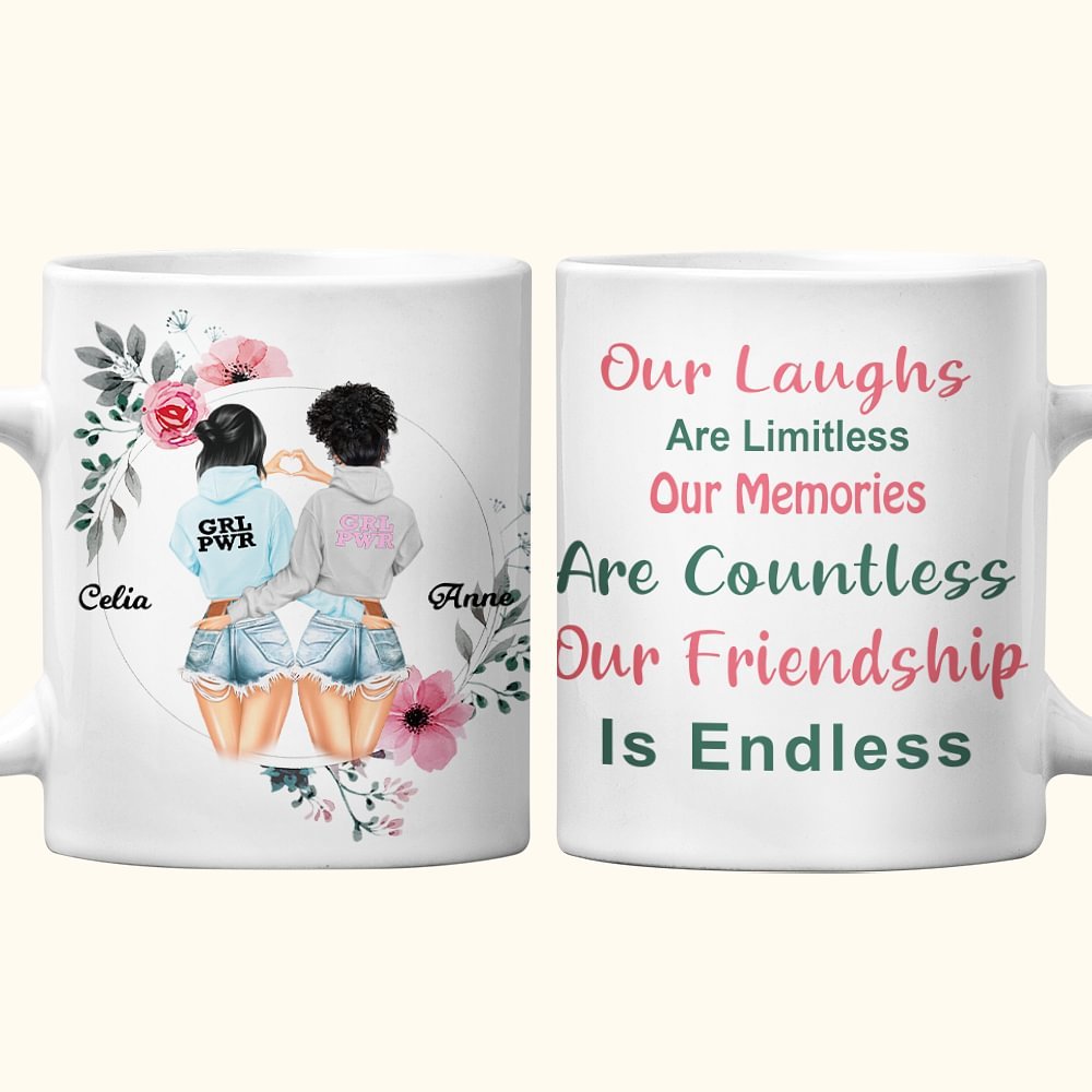 Personalised Our Laughs Are Limitless Our Memories Are Countless White Ceramic Mug Friend Christmas Birthday Gifts for Friend Bestie Sister