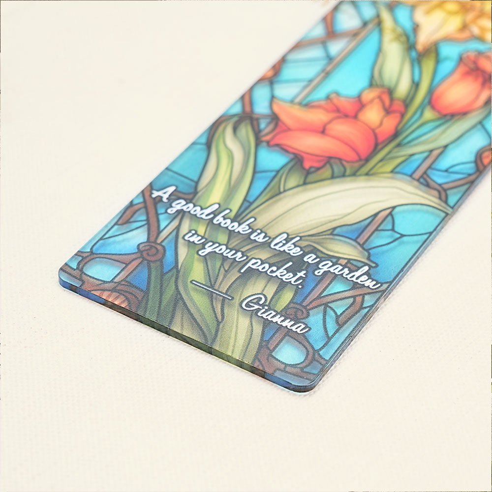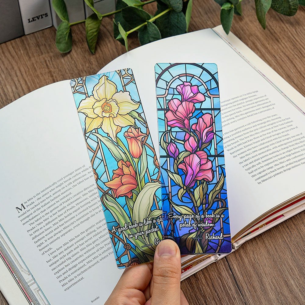 This bookmark features a stunning painted design that showcases 12 beautiful birth flowers and incorporates the artistic effects of stained glass, presenting an exquisite visual feast. Personalization options allow you to add names and meaningful text, making each bookmark a unique piece that resonates with the reader's personality and preferences.