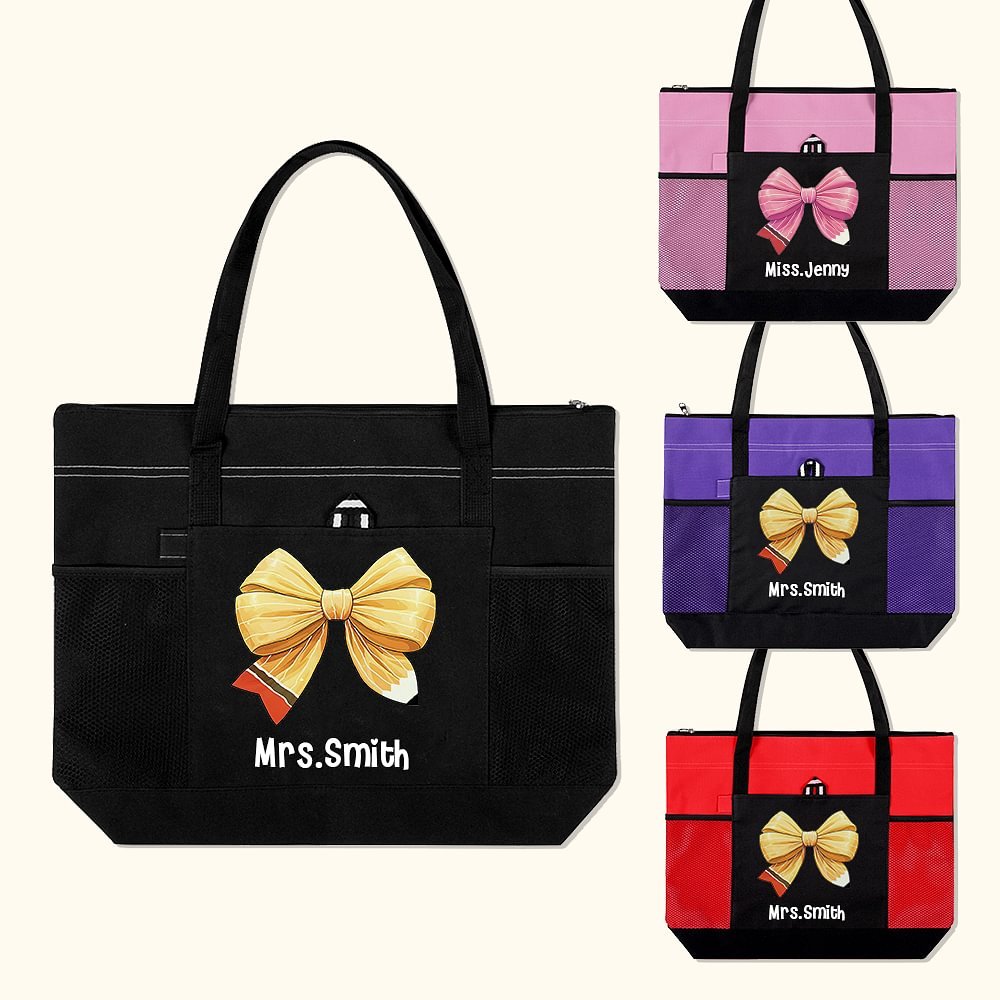 This bag combines the bow and pencil pattern, comes in two different color designs for you to choose from, and you can also print your name on the bag to make the bag more personal.