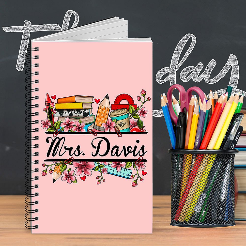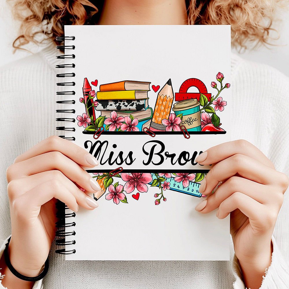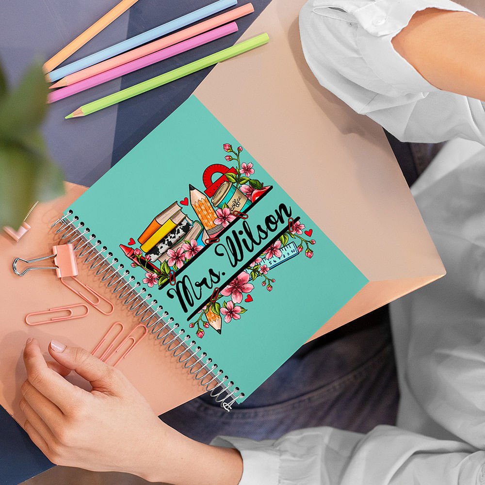 This notebook is printed with classic educational elements such as books, rulers, and crayons, vividly showing every bit of educational work. The colors are bright and strong, perfectly showing the teacher's personality. To make the notebook more thoughtful, you can customize the teacher's name and let each blooming flower decorate it.