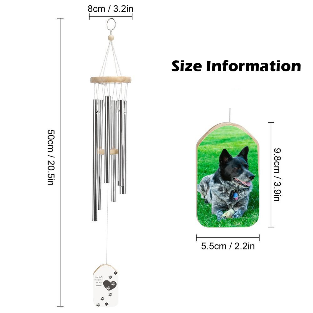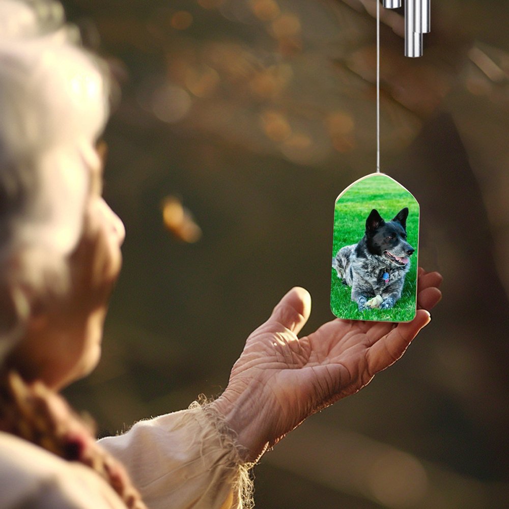The wind chime is a thoughtful way to alleviate the pain of losing a pet and express your care to loved ones. Its double-sided design allows you to showcase your pet's photo on one side and choose a pattern with commemorative text on the other.