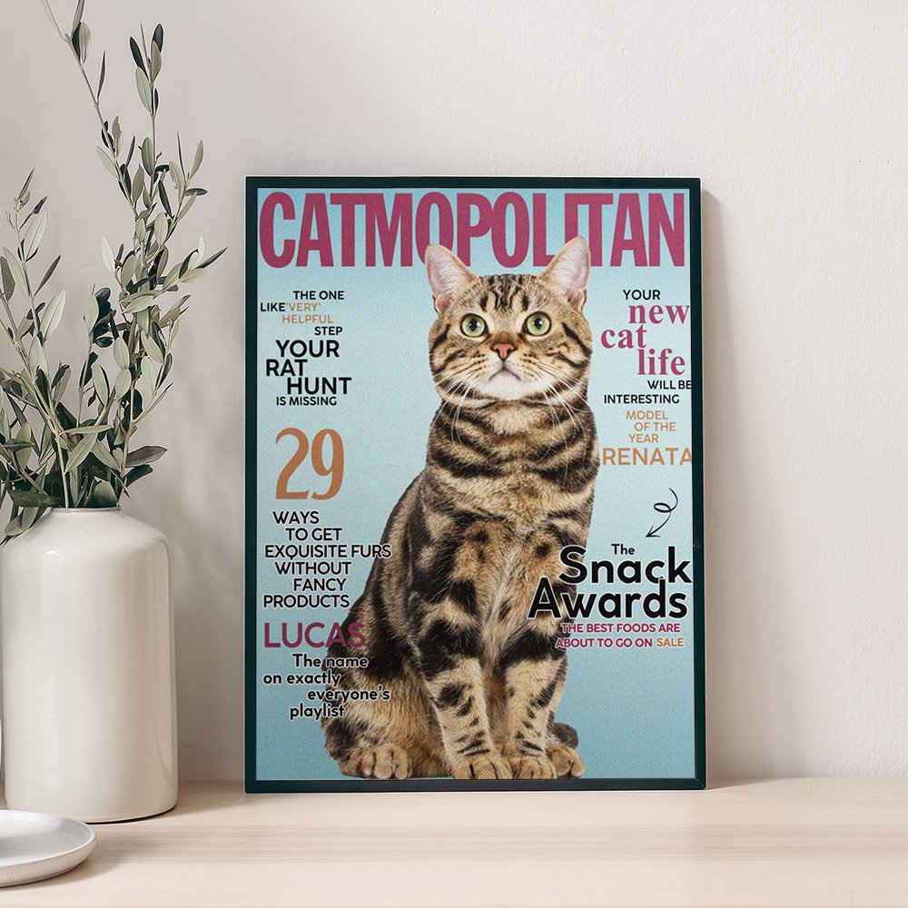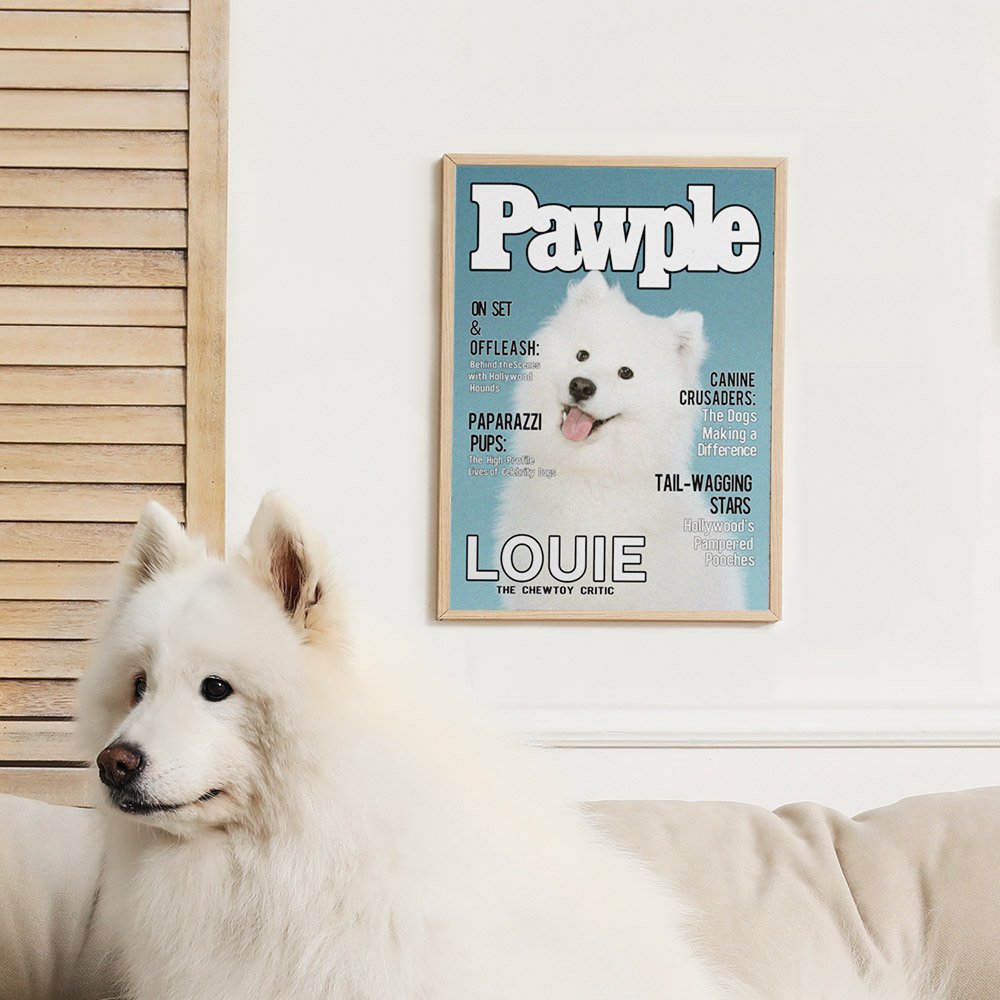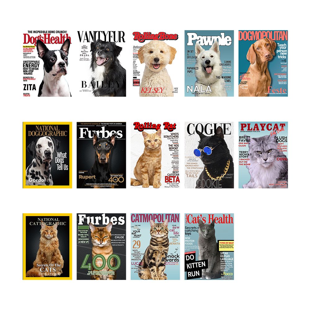 This pet portrait poster is a fun way to recognize or thank your dog, cat, or other pet. Our magazine covers are carefully designed to capture the essence and personality of your beloved furry friend. Simply provide us with a high-quality photo of your pet, and we will transform it into a stunning magazine cover that showcases your pet's charm.