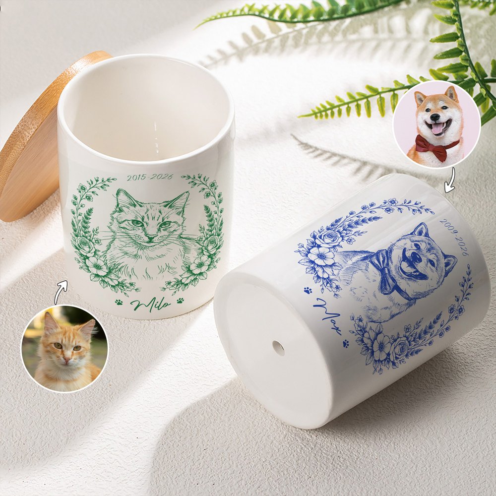 Using a realistic pencil sketch style, each design can be customized based on a pet's photo, creating a unique and adorable pet image. Paired with simple floral decorations, it exudes a warm, artistic, and sophisticated feel, making each one one-of-a-kind.
