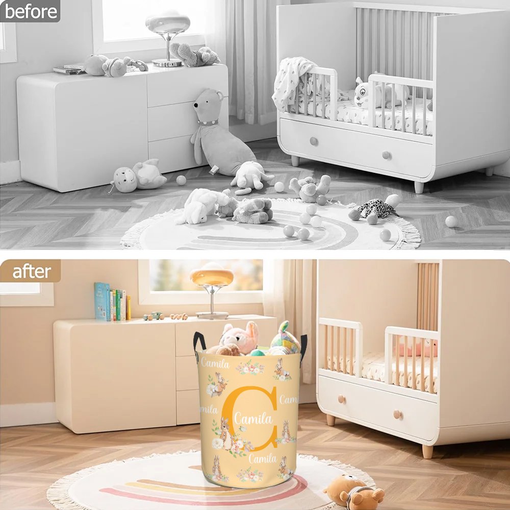 This storage basket is designed with Peter Rabbit in watercolor style. The overall painting style is fresh and healing, capturing the different postures and movements of Peter Rabbit, which is lively and cute. You can customize your initials and name on it, making it a storage tool that reflects your unique style!