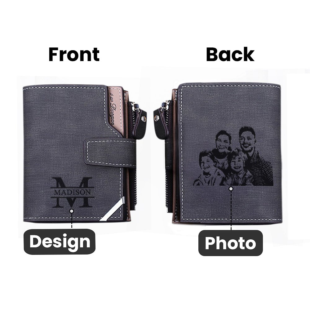 This men's wallet has 3 different colors, the design of the wallet is simple and steady, the front of the wallet can be printed with a name, and the back can be printed with a photo according to your preferences. Which makes it even more special.
