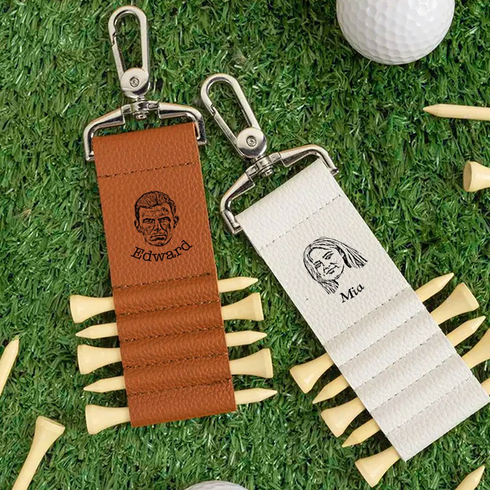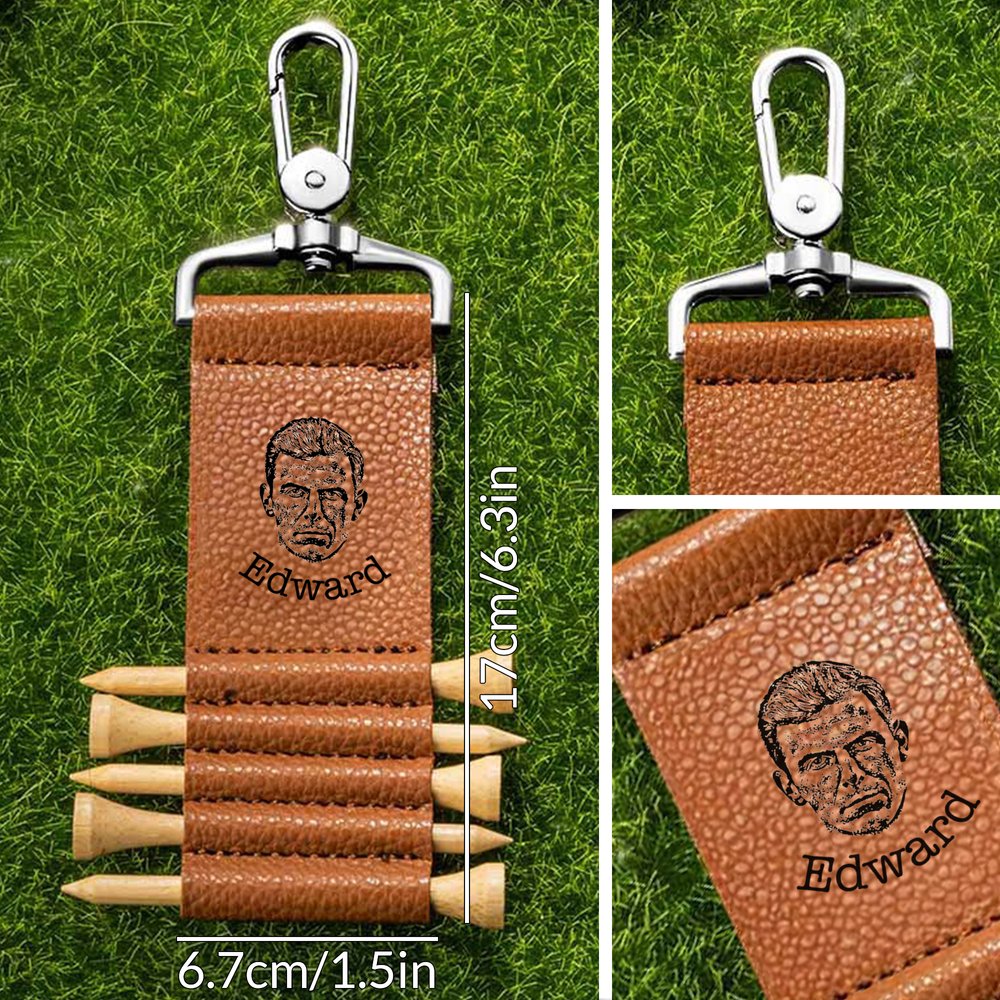 Personalised Photo to Lines Portable Golf Tee Holder Bag Tag with Name and 5 Pcs Bamboo Tees Golf Club Birthday Christmas Gift for Golf Player