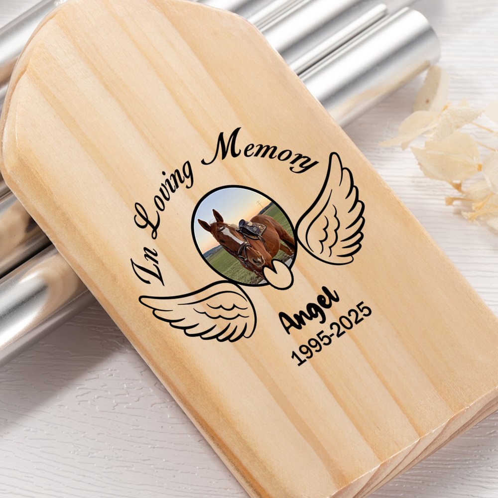 Featuring wings and paw prints as core emotional design elements, this piece combines customizable pet photos, names, commemorative years, and heartfelt messages. The overall style is elegant, poetic, and deeply sentimental, breaking the monotony of ordinary memorial decorations. The wing motif symbolizes pets transforming into angels ascending to heaven, while the pet photo provides a tangible vessel for remembrance—letting memories drift on the wind with each chime.