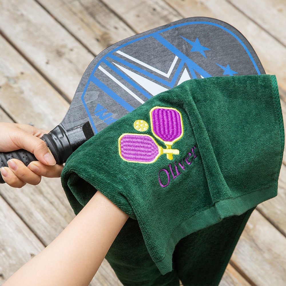 A pickleball towel is the ultimate gift for those who love the game of pickleball. This towel is with a vibrant and eye-catching design featuring crossed pickleball paddles beautifully embroidered on the front. The personalization adds an extra touch of thoughtfulness, making it the perfect gift for Father's Day, birthday, anniversary, or just to show your appreciation for the love of pickleball.