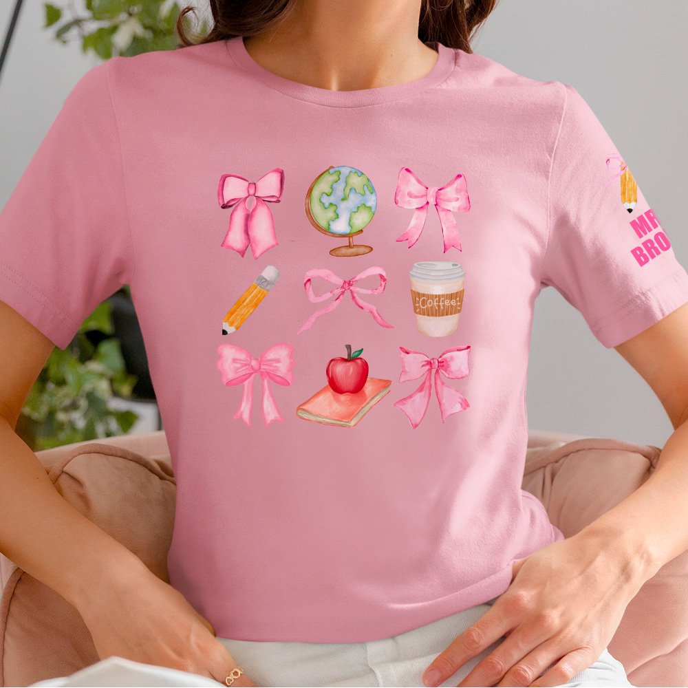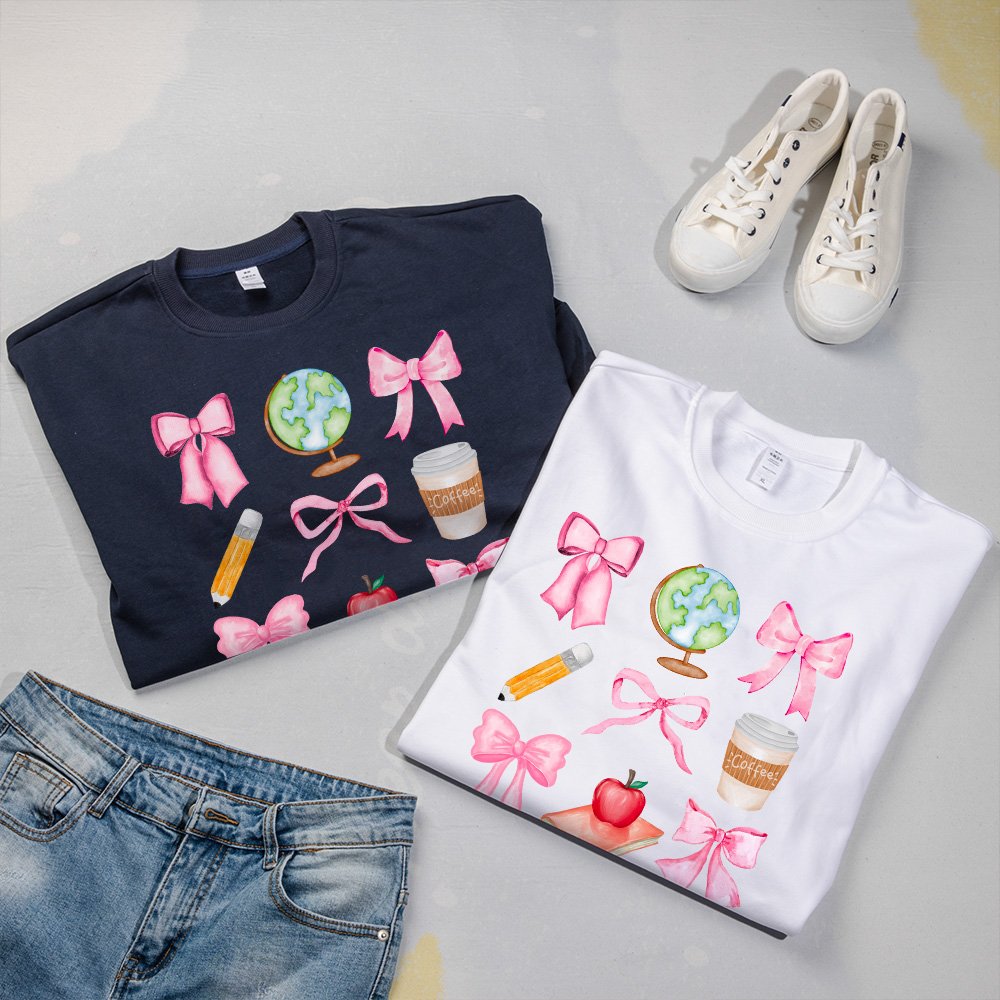 Our sweatshirts and T-shirts feature classic patterns such as a pink bow, pencil, coffee, globe, and apple. These elements beautifully represent teachers' nurturing and educational role, making it an ideal gift to express gratitude.
