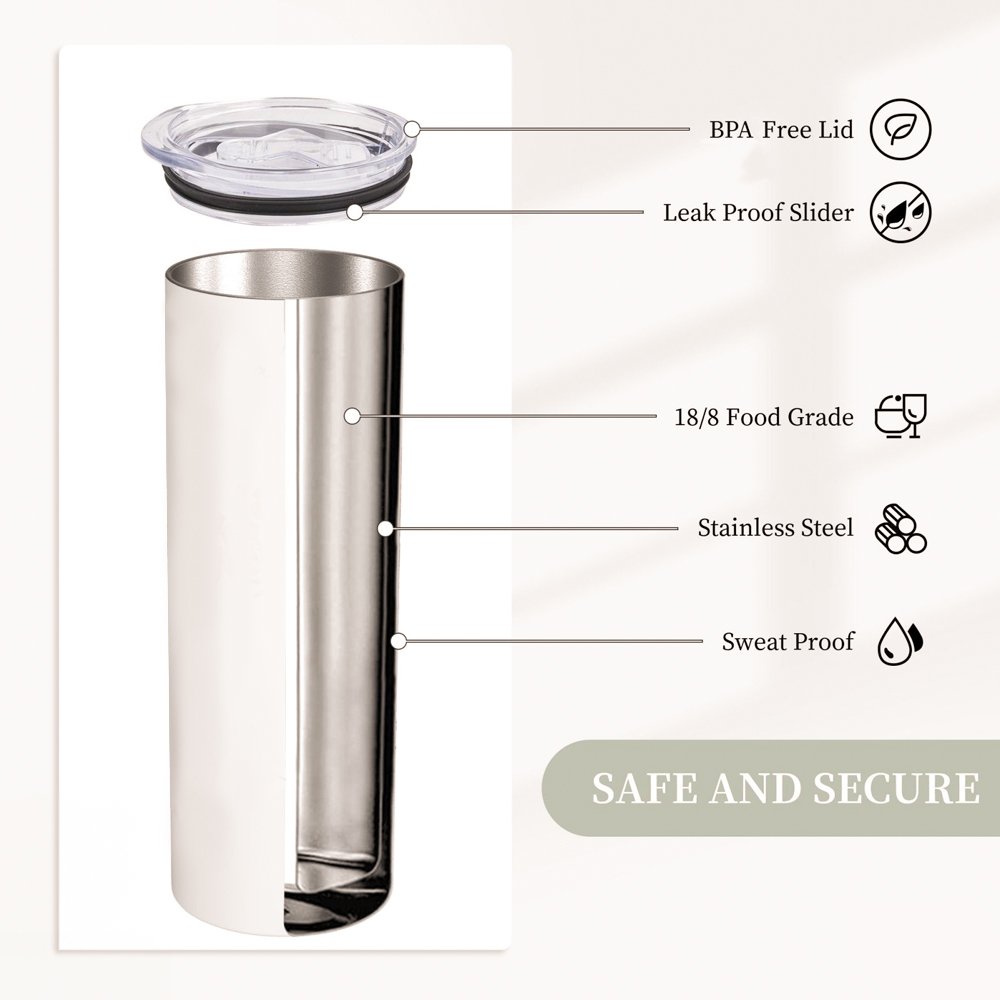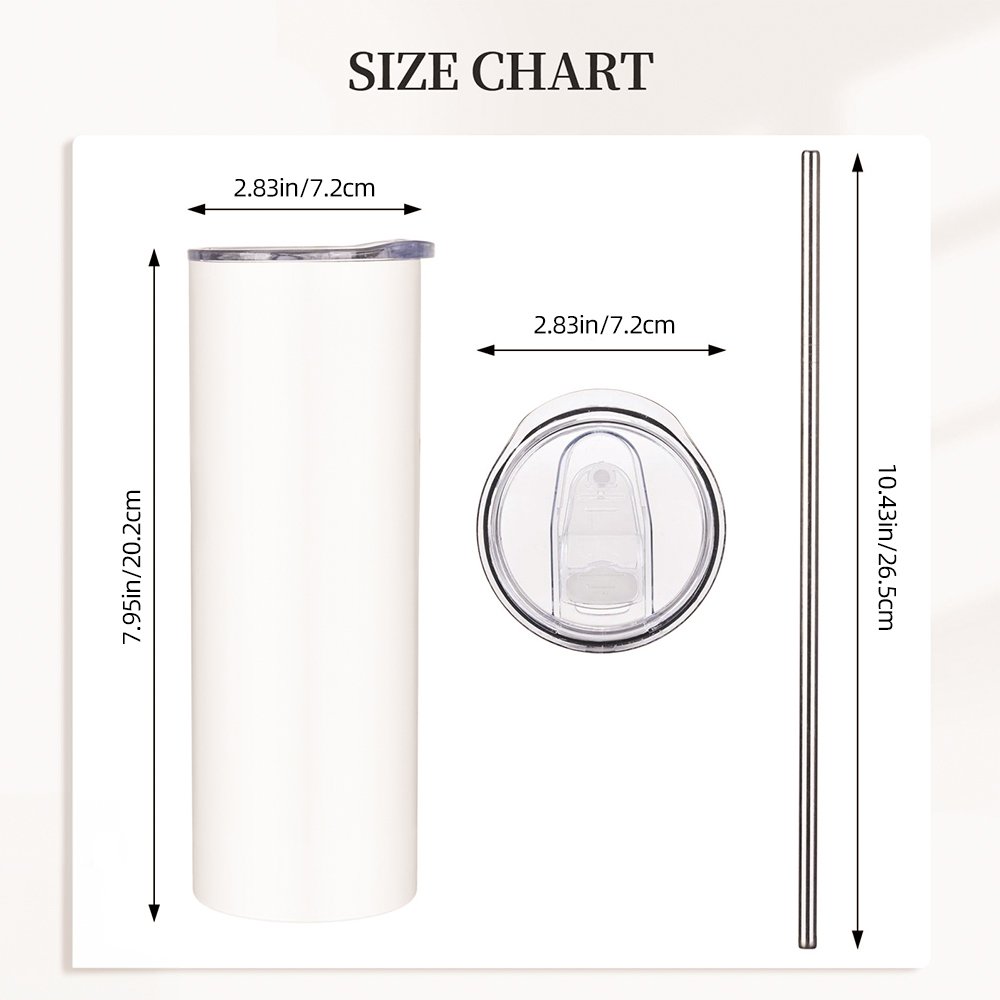 Made from premium 304 stainless steel, this tumbler is durable and easy to clean. Its 20 oz capacity is perfect for holding your favorite beverages, while the included straw and cleaning brush ensure easy sipping and hassle-free cleaning. It also features a wide-mouth design for easy pouring and adding liquids.
