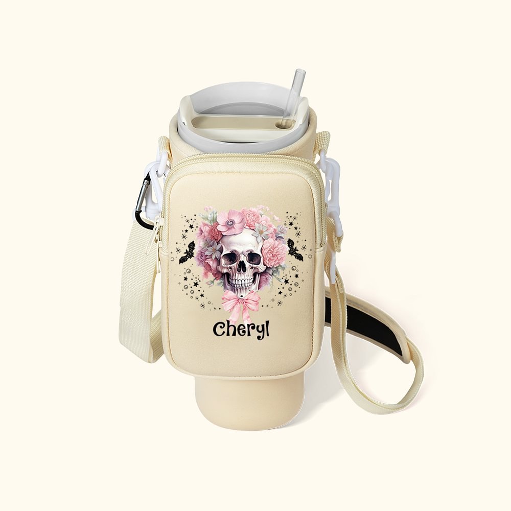 This water bottle carrier is a masterpiece of design, blending edgy skull motifs with delicate pink floral patterns. The striking contrast is sure to captivate both skull enthusiasts and those with a love for feminine aesthetics.