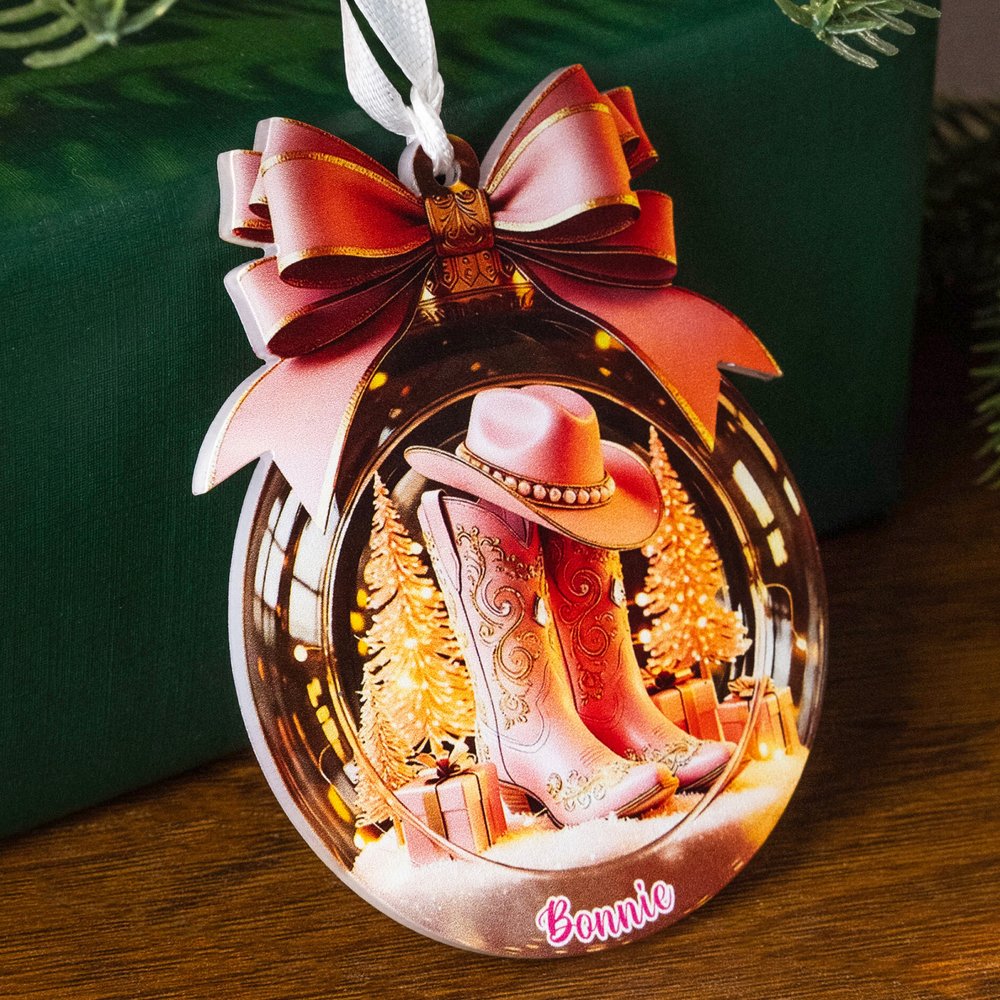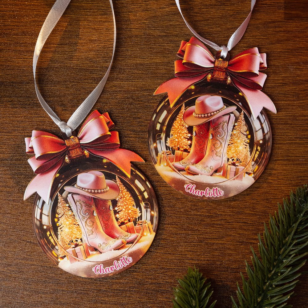 Crafted from sturdy, high-quality materials, the ornament resists fading even when stored seasonally and maintains its bright pink cowgirl design. Its lightweight build is gentle on Christmas tree branches, while the smooth, printed surface ensures the details, boots, bow, and custom name stay crisp and eye-catching year after year.