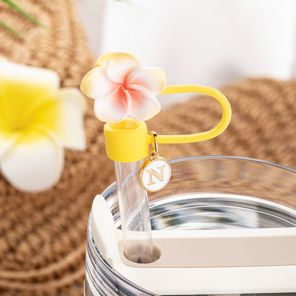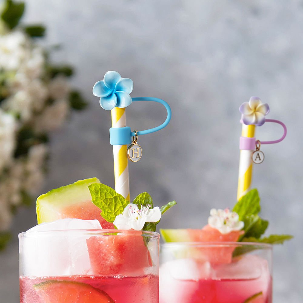 This straw topper is a fashionable drink accessory inspired by plumeria, which not only adds a unique decorative effect to the drink but also enhances the overall drinking experience. The straw topper also comes with a customizable letter pendant to make it even more distinctive.