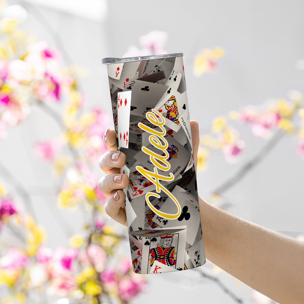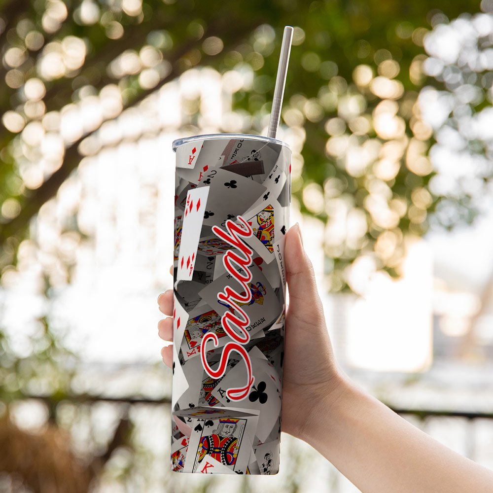 But what truly sets this tumbler apart is its personalization feature. With the option to add your name or a special message, you can make this tumbler truly yours or create a thoughtful gift for the poker enthusiast in your life.