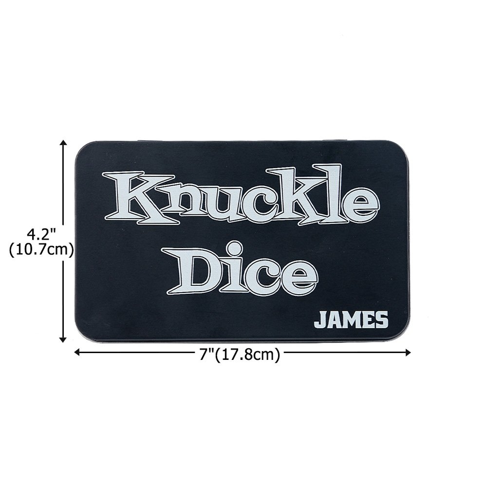 This portable 2-player Knuckle Dice board game features a sleek black storage box with a bold "Knuckle Dice" print, creating a modern and eye-catching look. The set includes 18 precision-crafted dice in 6 vibrant colours, allowing you to match your style. The board’s interior is printed with clear game rules and intuitive instructions, making it easy for both beginners and experienced players to jump right in. For a personal touch, add your name to the tin box—making it a truly unique keepsake.