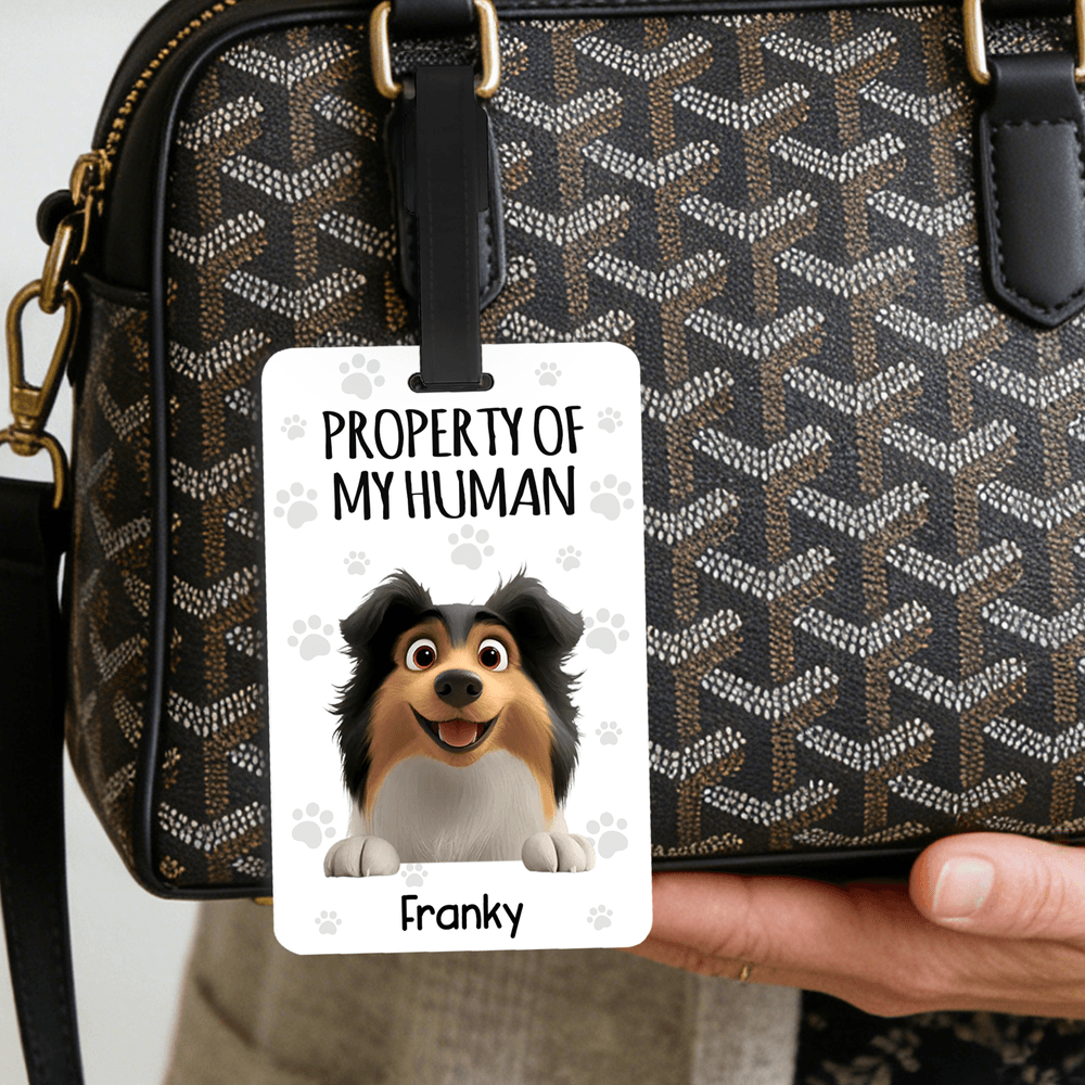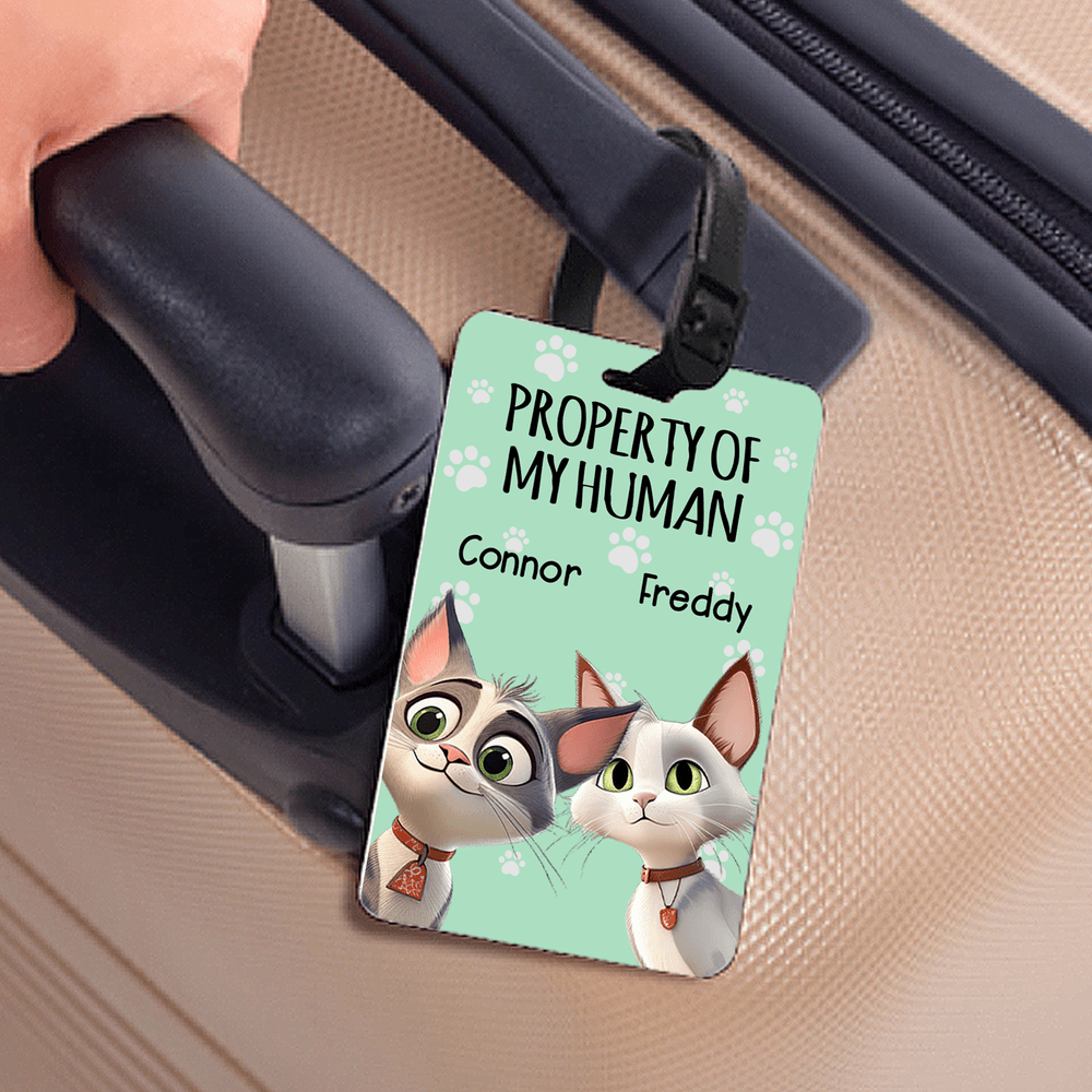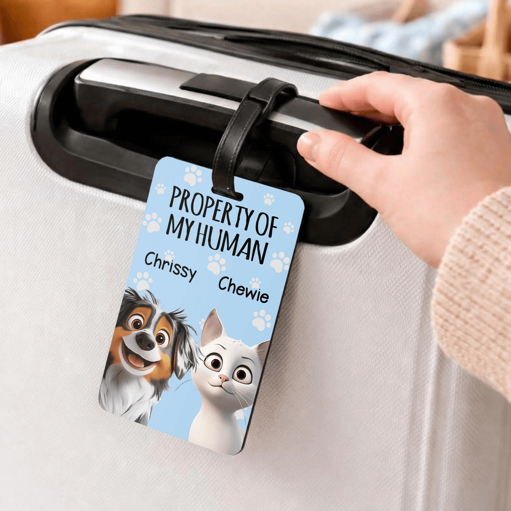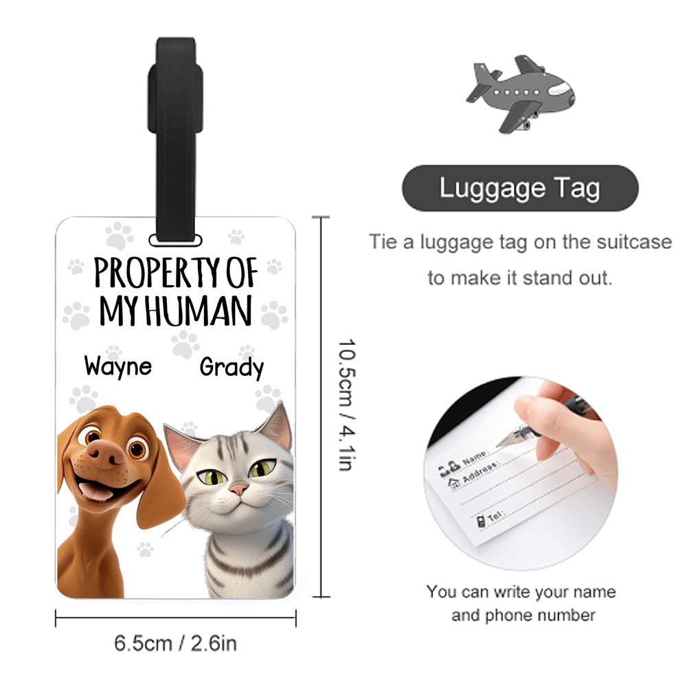Personalised Property of My Human Cute Cartoon Pet Luggage Tag with Name Travel Accessories Birthday Gift for Pet Owners Travel Lovers