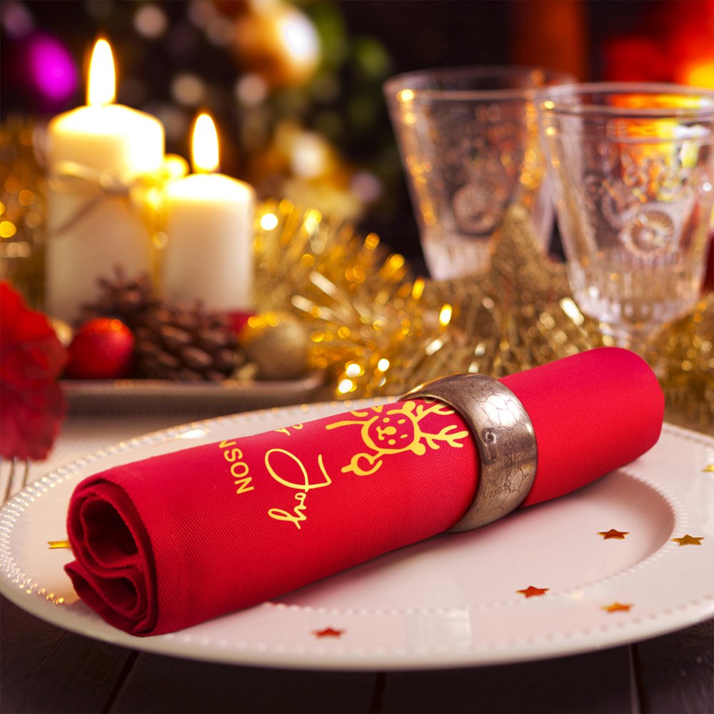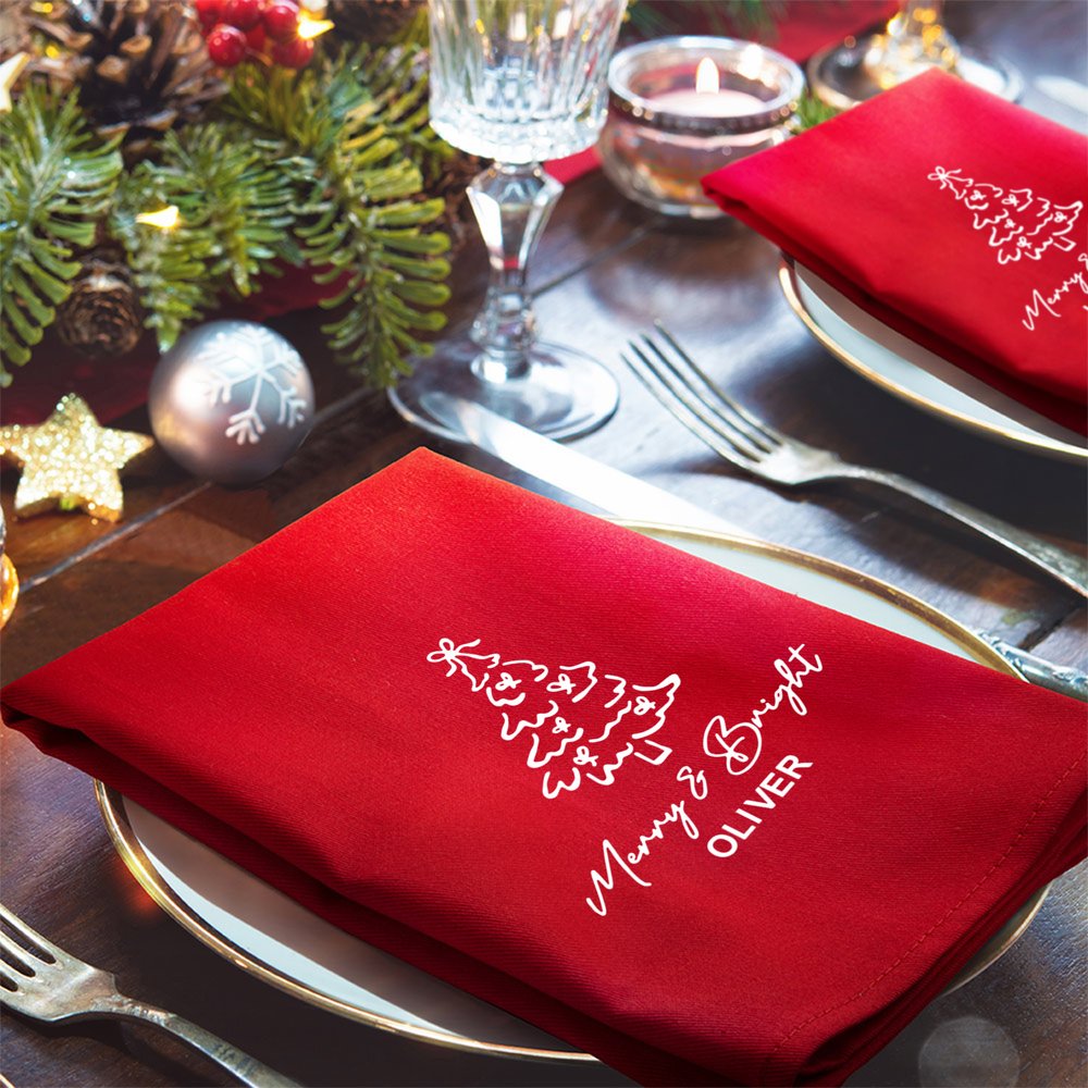 Each napkin can be Personalised with your family’s name and a festive icon, adding a unique and meaningful element to your holiday table. This personal touch makes these napkins more than just a functional item—they become a memorable keepsake for years to come.